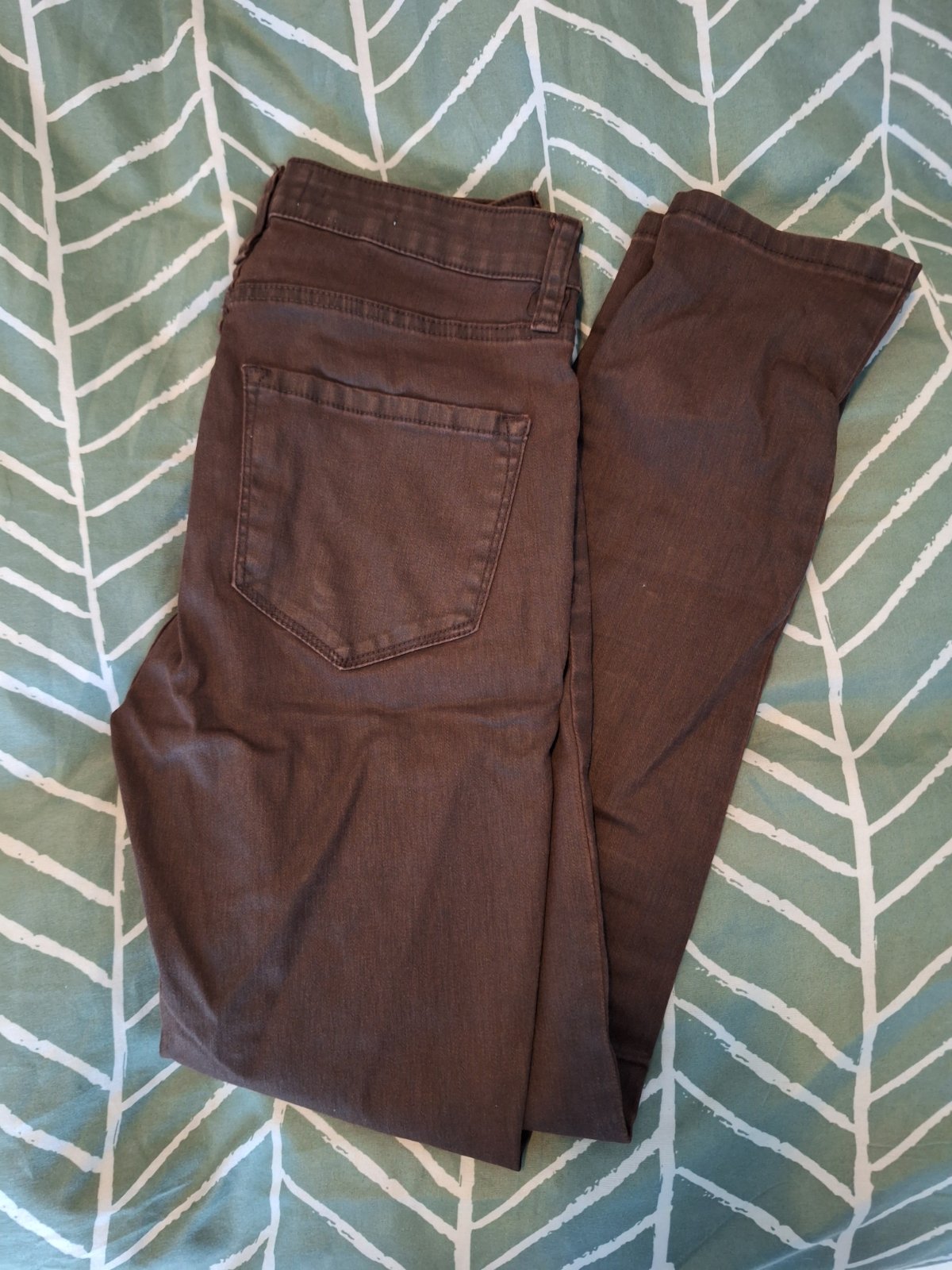 Predam nohavice par krat oblecene. V dobrom stave. Su tmavohnedej farby, na fotkach vyzeraju inej farby. Material: 100% bavlna. Vrecka: 4 funkcne. Nezehlene