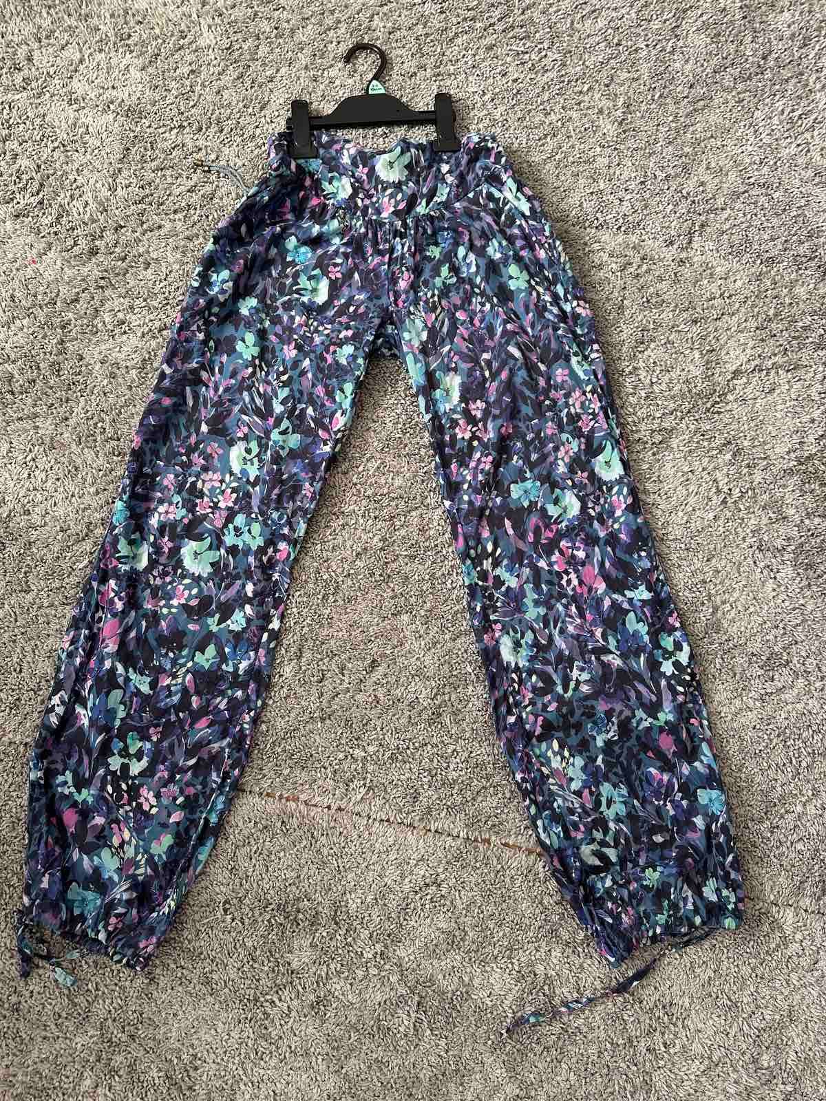 Predám dámske nohavice značky PROMOD vo veľkosti S. Ľahký, splývavý šifónový materiál, veľmi príjemné na nosenie. Elastický pás so šnúrkou umožňuje pohodlné prispôsobenie postave. Rovný, mierne zúž...