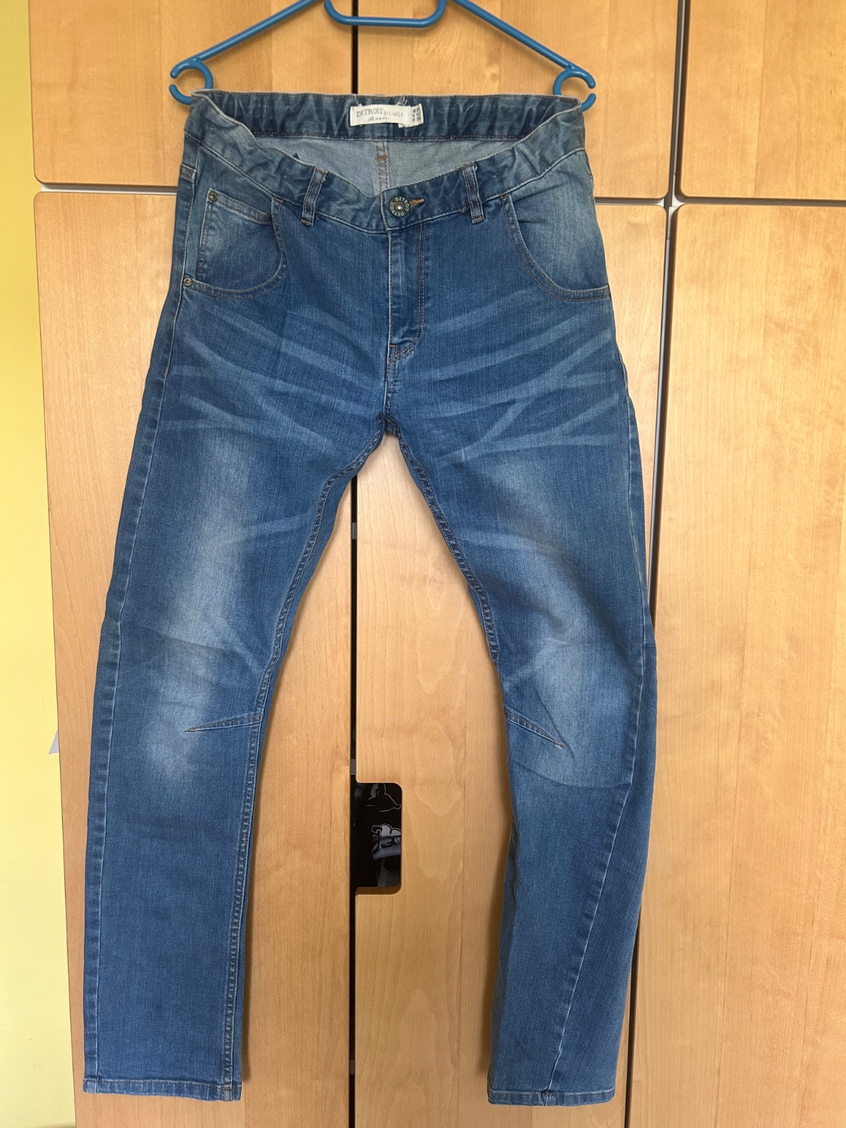 pekné, nepoškodené, málo nosené, moderné rifle zn. detroit, kupované v lindexe pás 36x2 pc. 28€