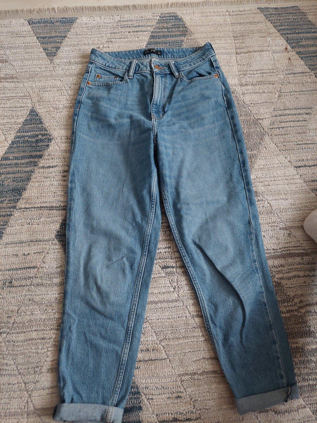 Skoro nové rifle, veľ. 34, Celk.dlzka 101cm, pas 34cm. Gombíky + zips.