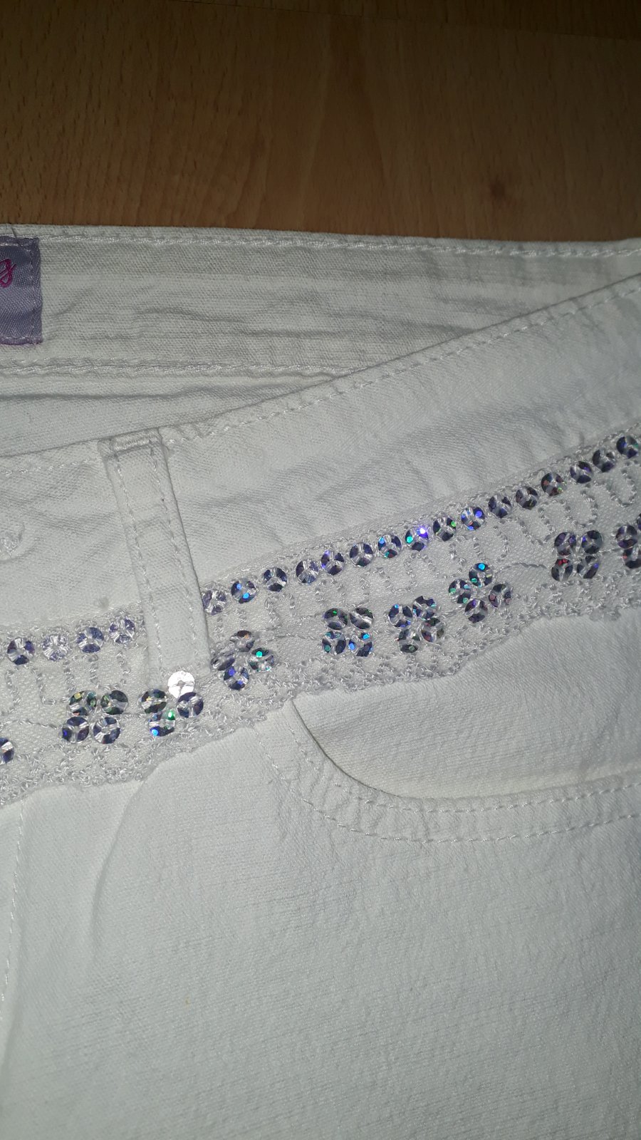 na páse a vreckách čipka a flitre
