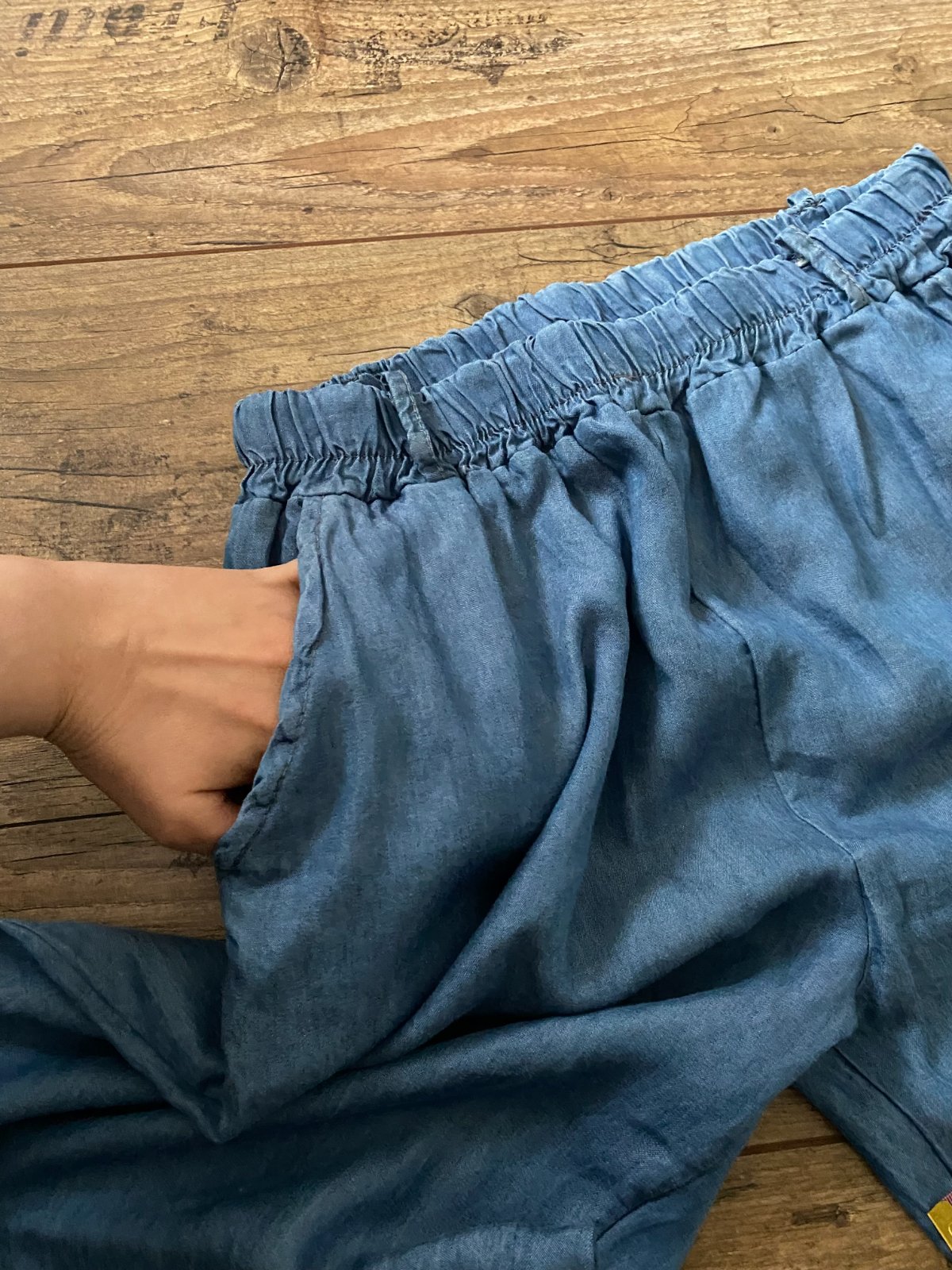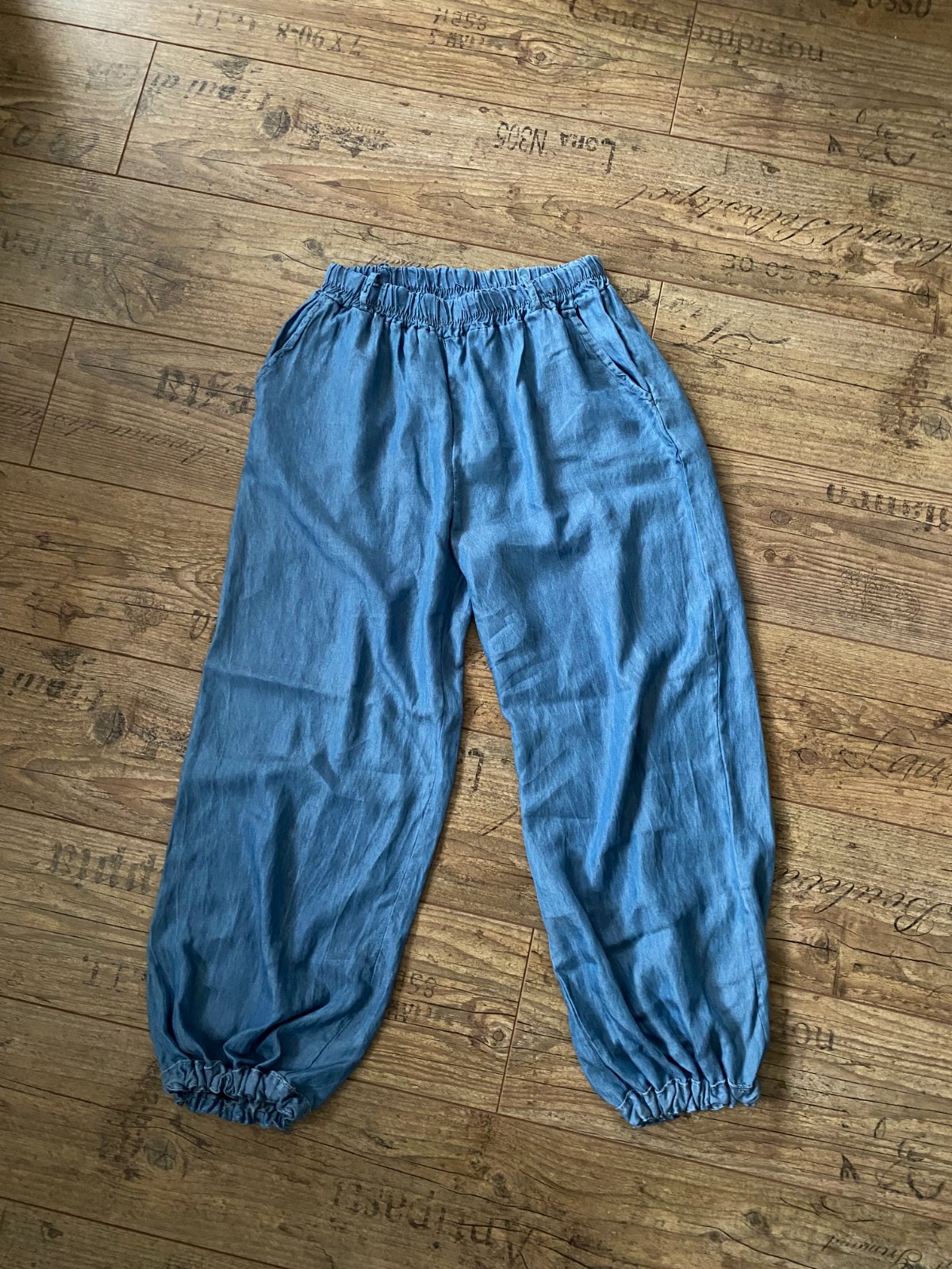 Sú nové, nikdy nenosené. Veľkosť približne L, ale pozrite si rozmery na fotkách. Pás je elastický. Materiál je tenký, vzdušný, perfektný na leto.