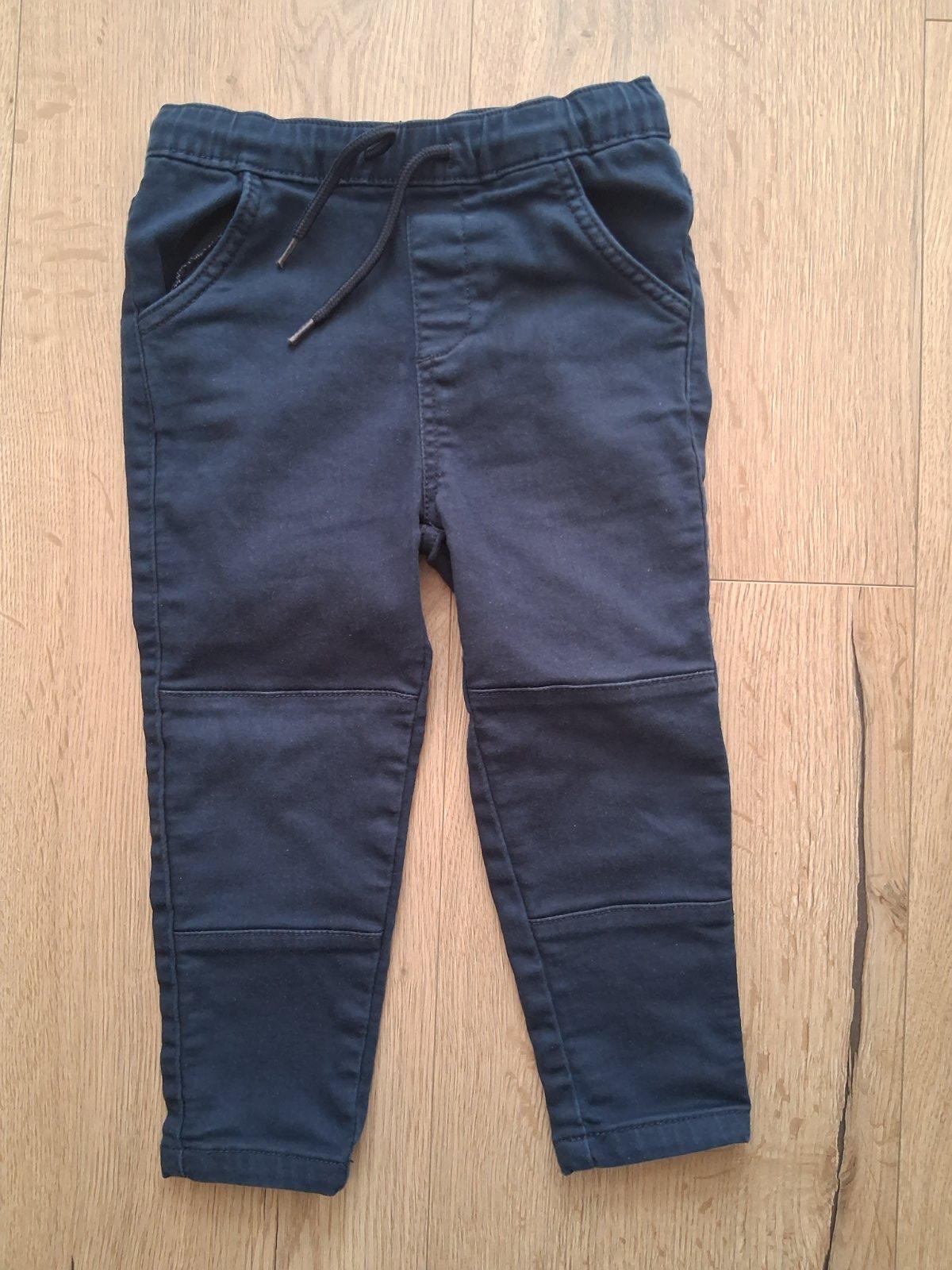Posuvam velmi pekne chlapcenske nohavice-elegantnejsie, ale aj do skolky. My sme ich nosili na oslavu a do kostola. V pase gumicka a moznost dotiahnut so snurkou. Su v top stave, farba tmavomodra, len sa mi to zle foti.