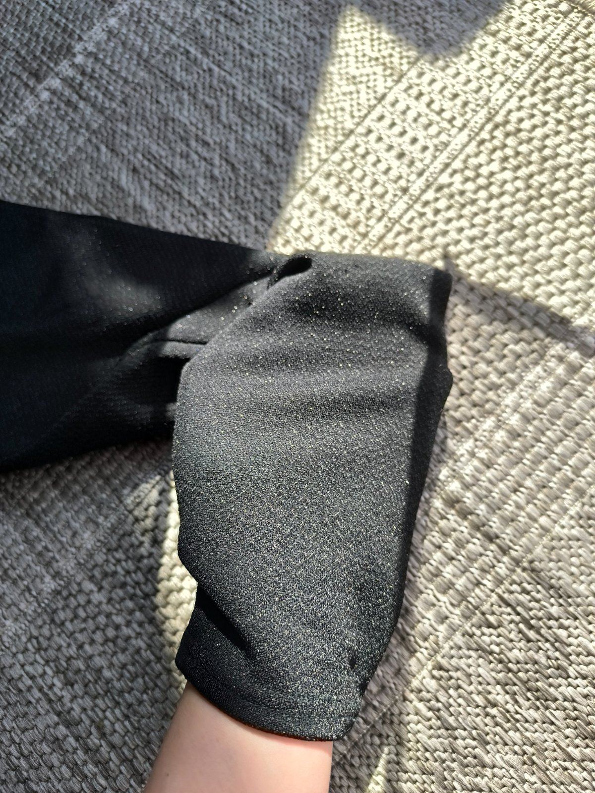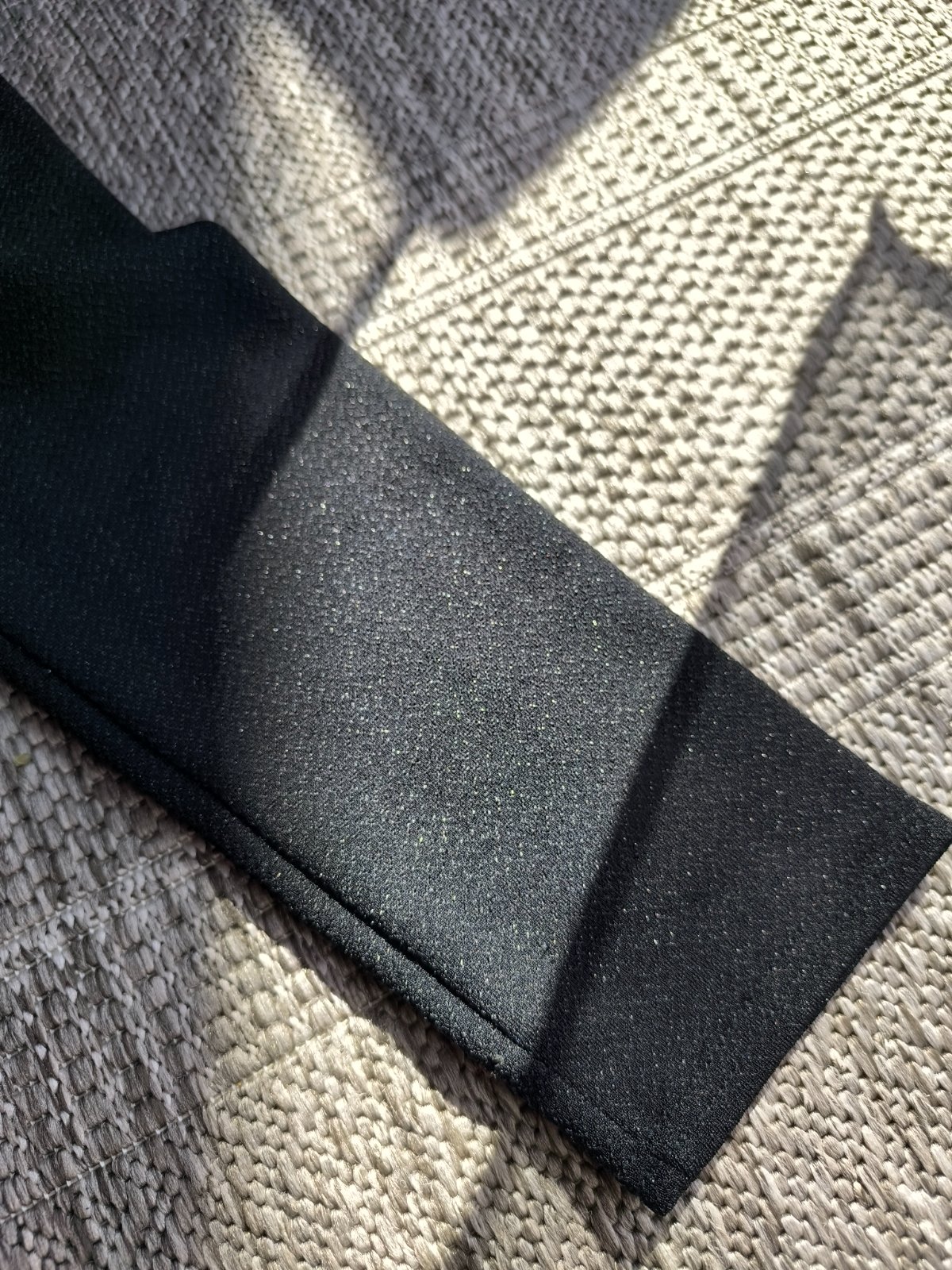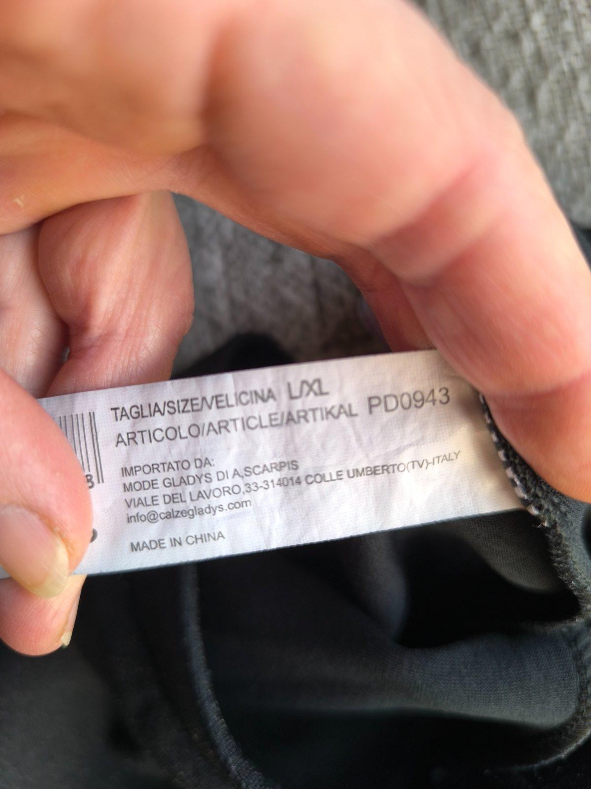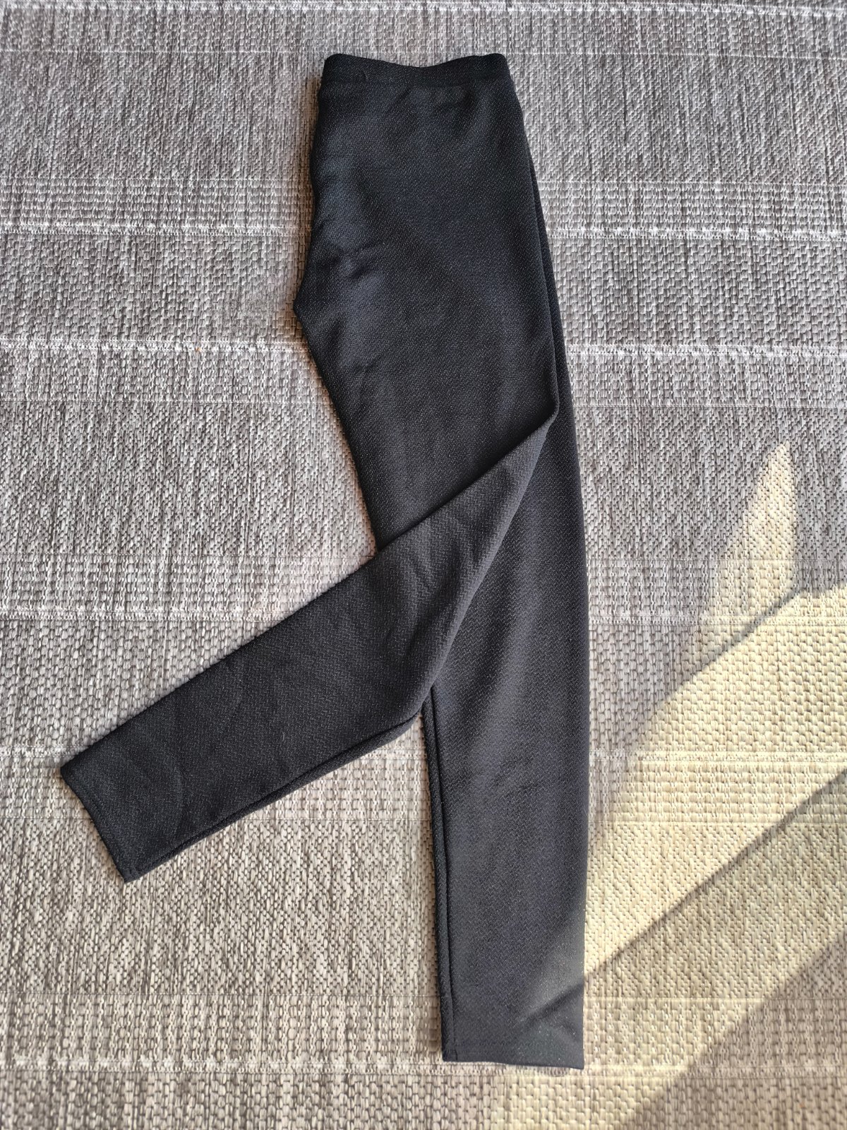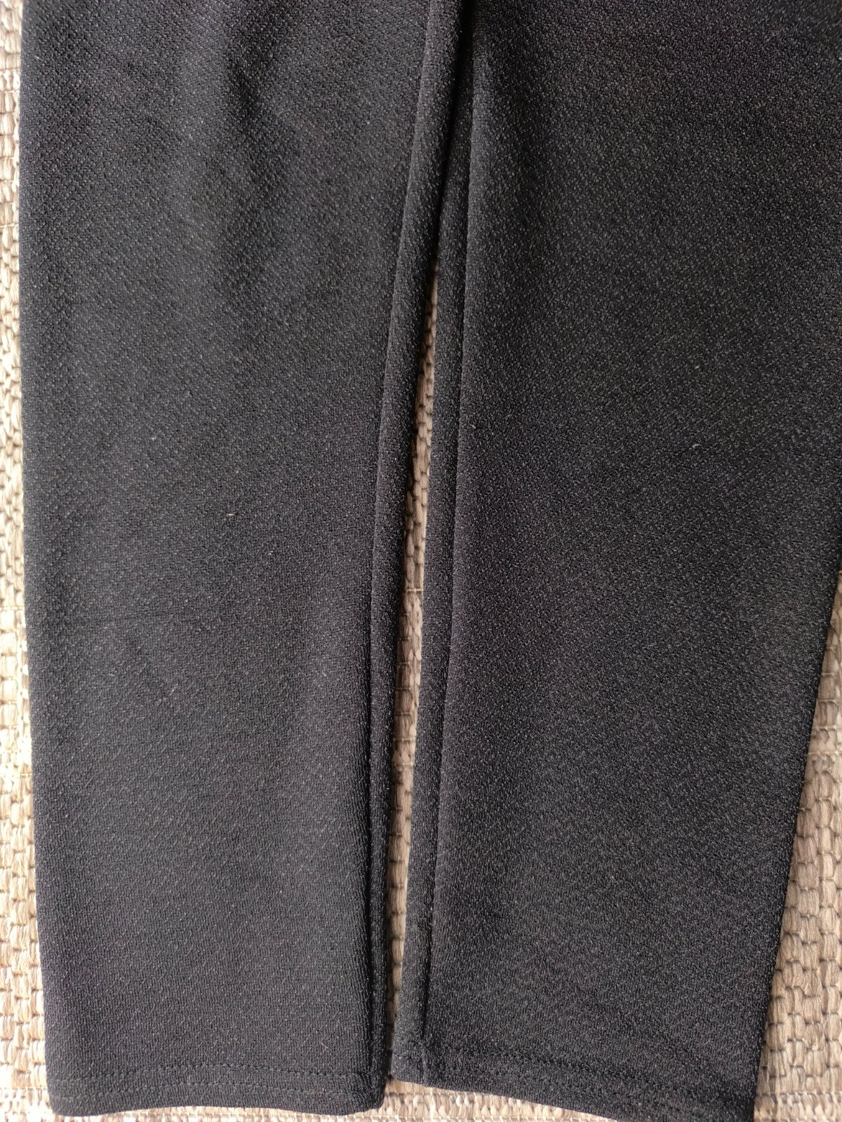 Čierne elastické nohavice, trblietavé, krásne sa na svetle ligocú. Vo veľmi dobrom stave, len jedna zatiahnutá nitka, robí to jemný pásik v spodnej časti, pozrite poslednú fotku. Veľkosť L/XL, dĺžka 102cm, šírka v páse 39-53cm, výška sedu 32cm.