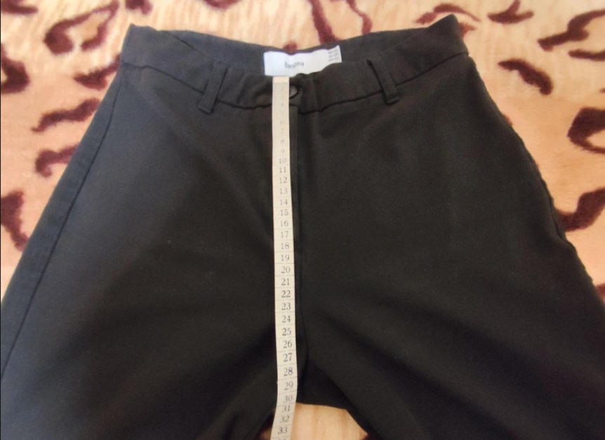 Bershka elegantné čierne nohavice veľ.38, stav ako na fotke, nosené, keď sú voľne položené ako na fotke, tak je vidieť na švoch, že sú používané, no pri oblečení sa to vyrovná. Pekne formujú postavu