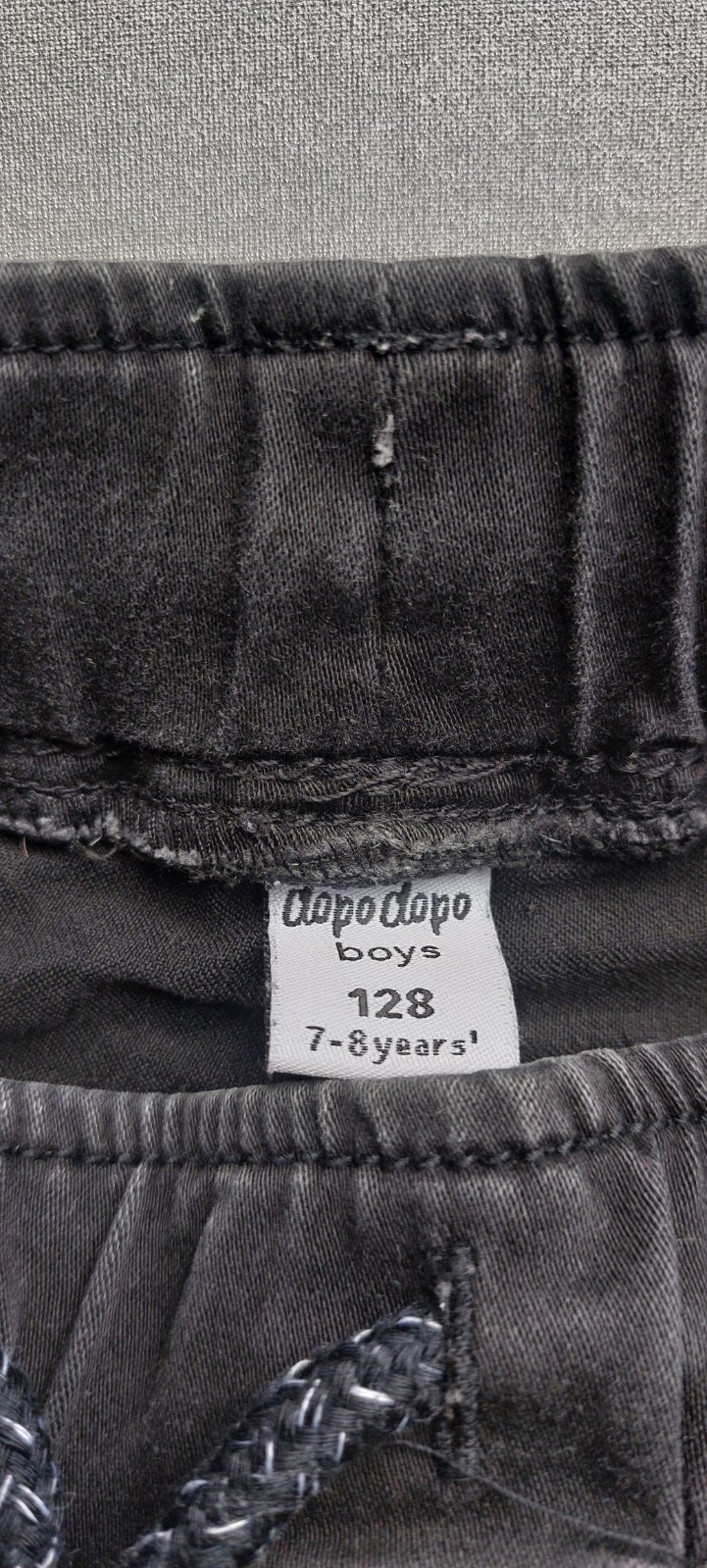 Bez poškodení, je to bledočierna farba. Trojštvrťové. Dĺžka 44 cm, šírka v páse 29 cm, šnúrkou sa dá stiahnuť.