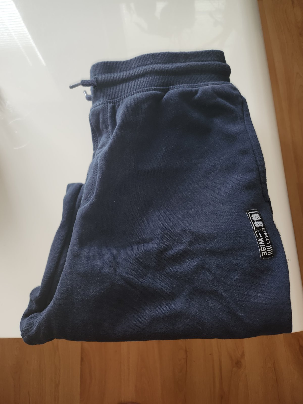 pekne,tensie,par krat oblecene teplaky celk.dlzka 107cm,nakolko boli v skrini nepouzite je uz slabsia guma v pase,ale sikovna mamicka vymenit vhodne aj na cvicenie