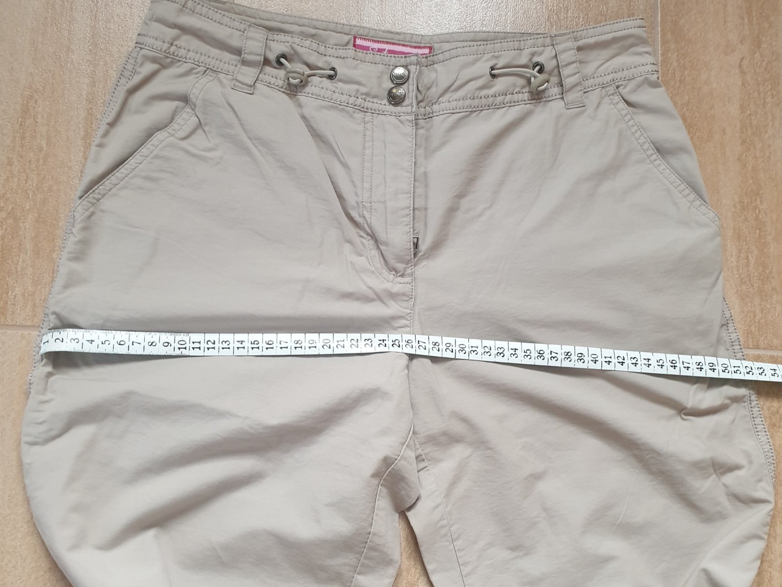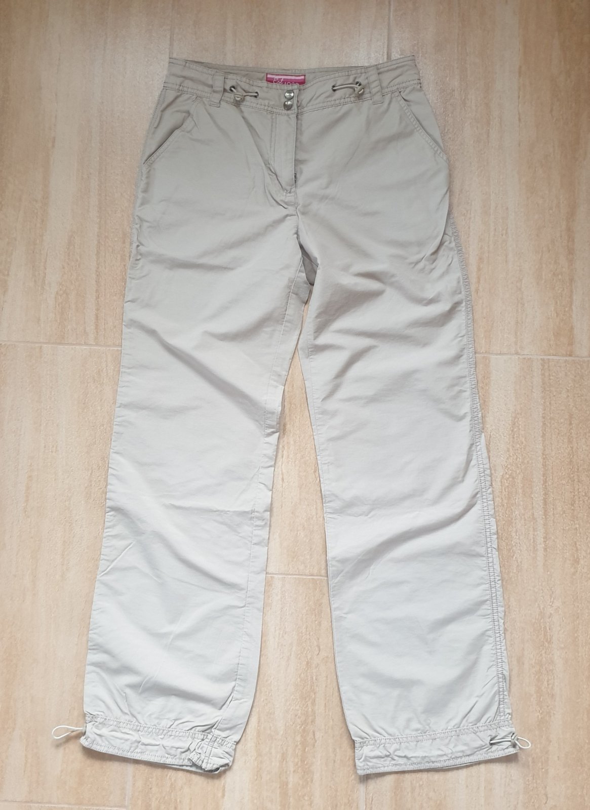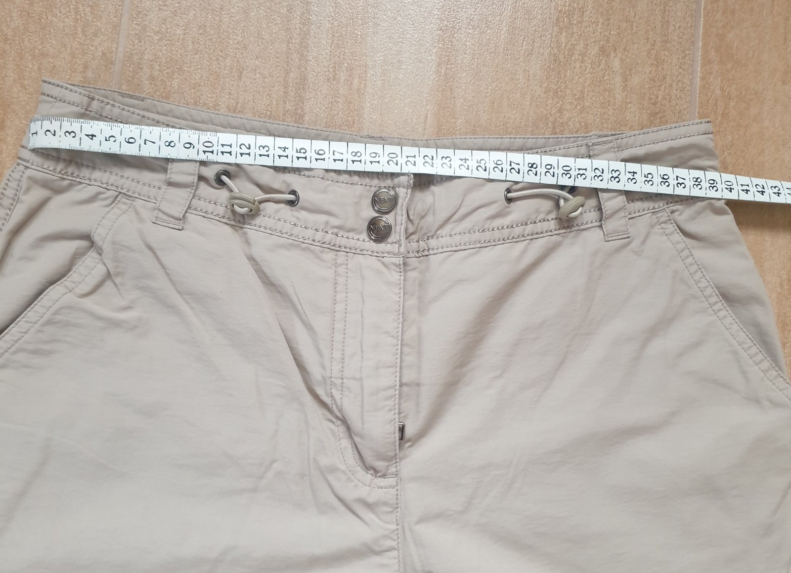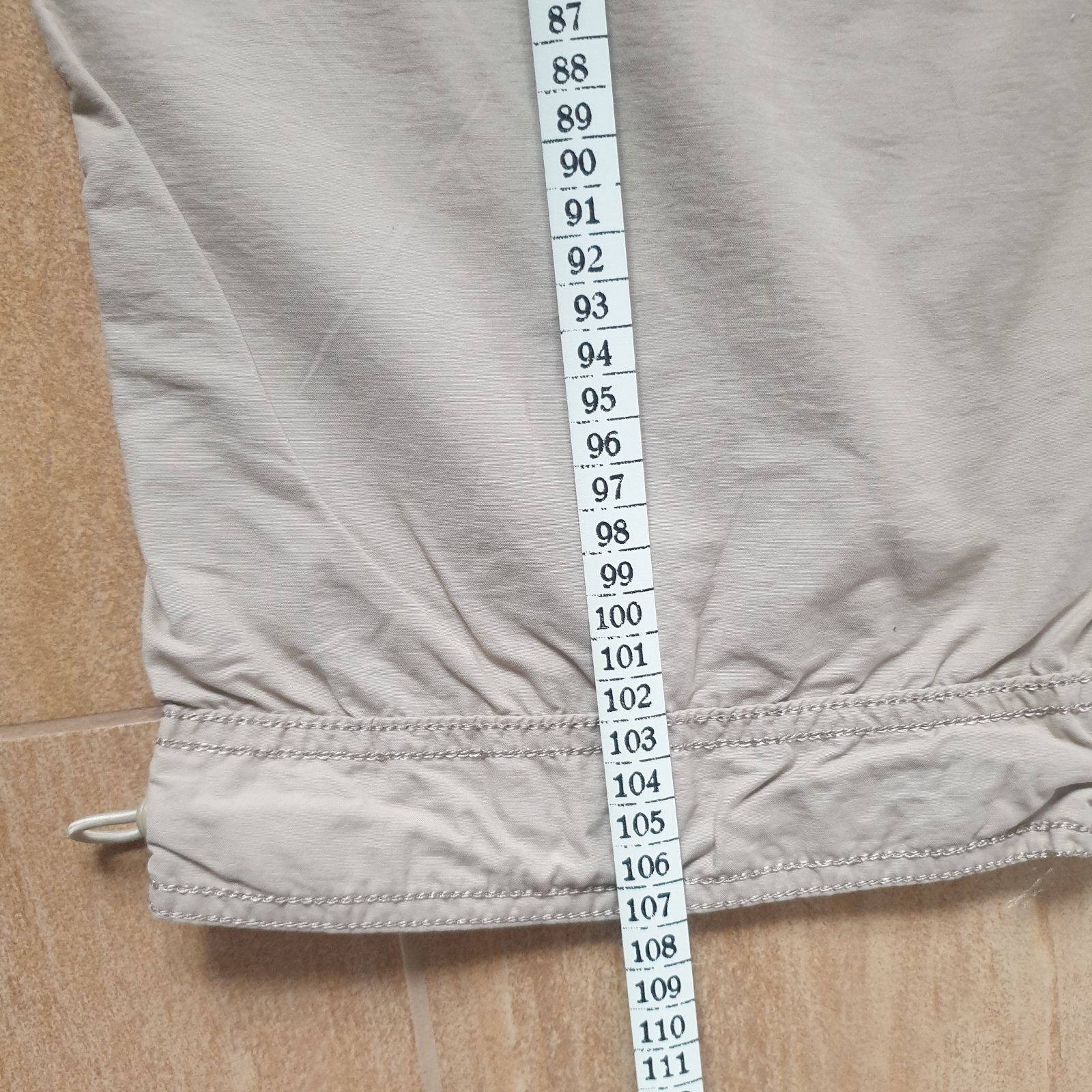 Minimálne nosené, dole sťahovanie gumičkou. Vhodné na vyššiu postavu. Miery na foto.