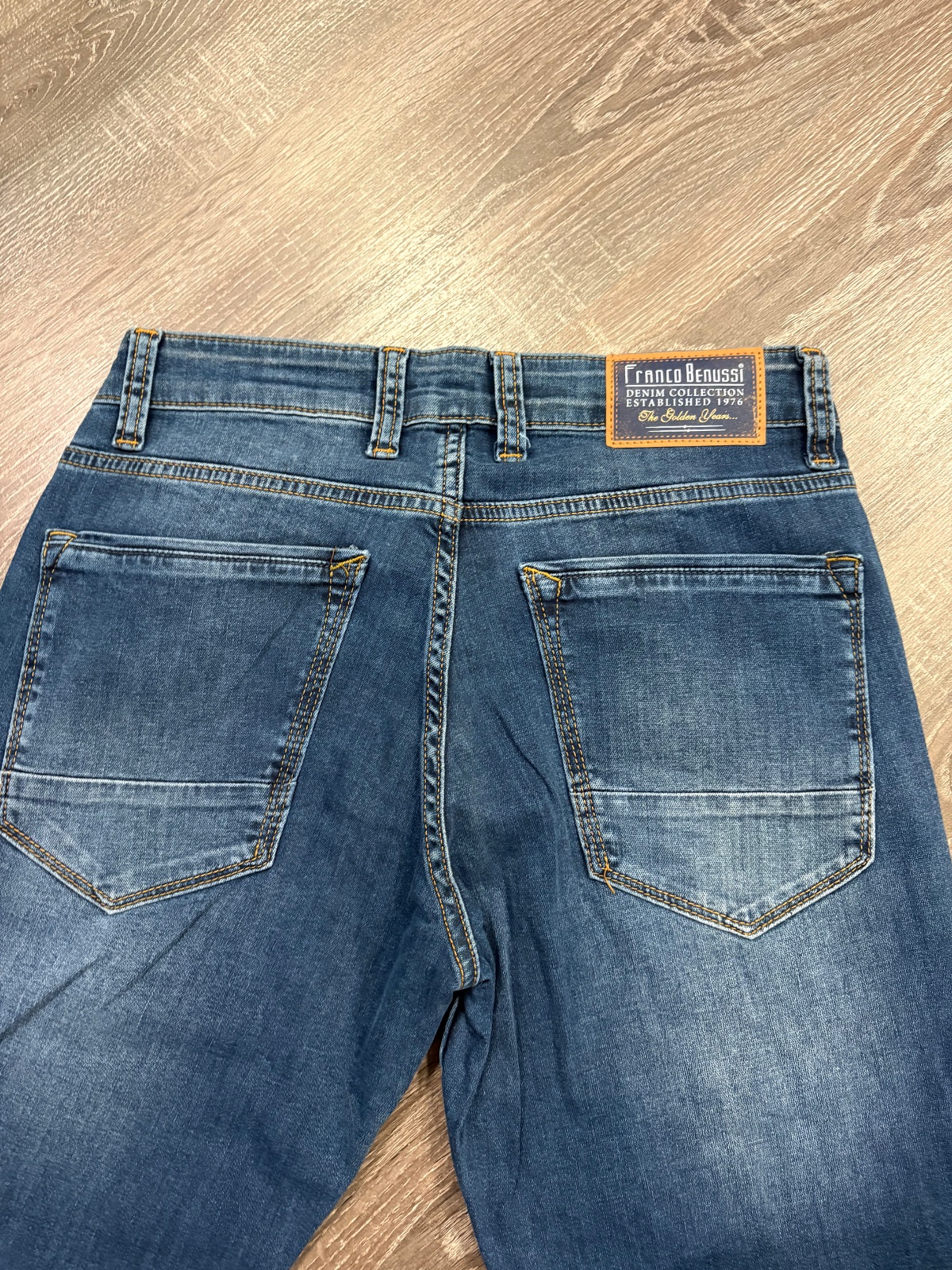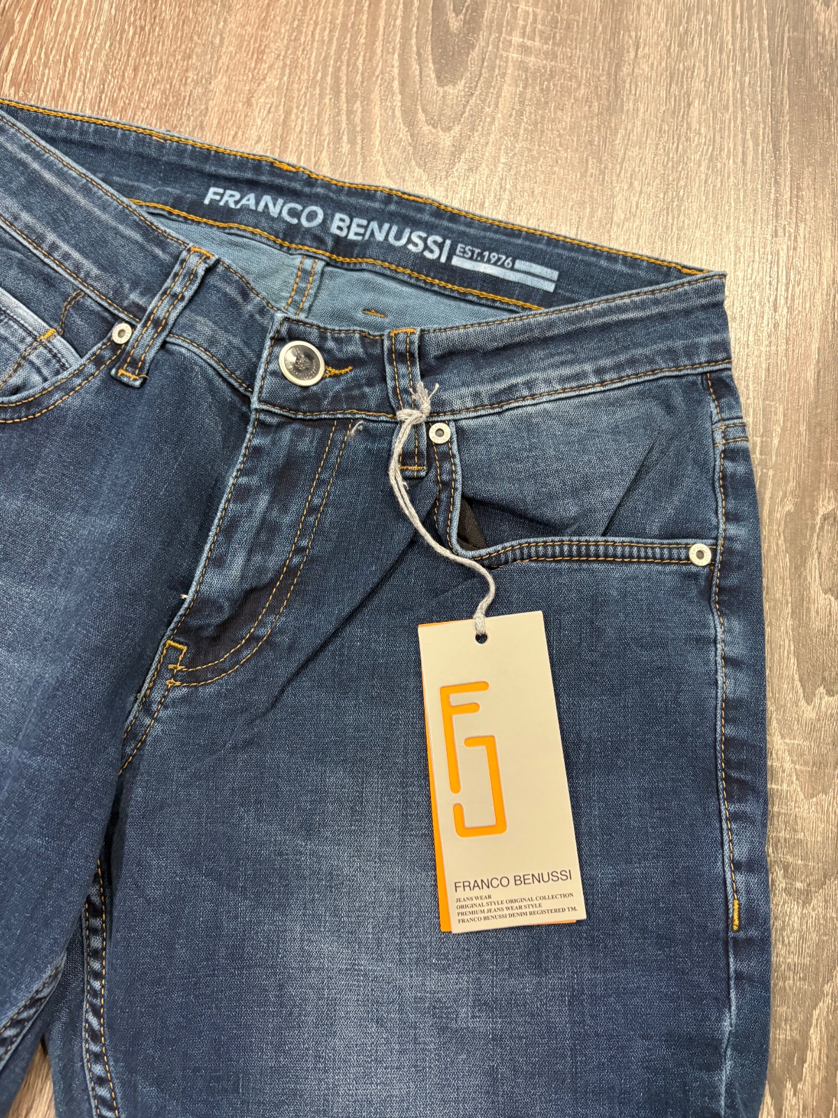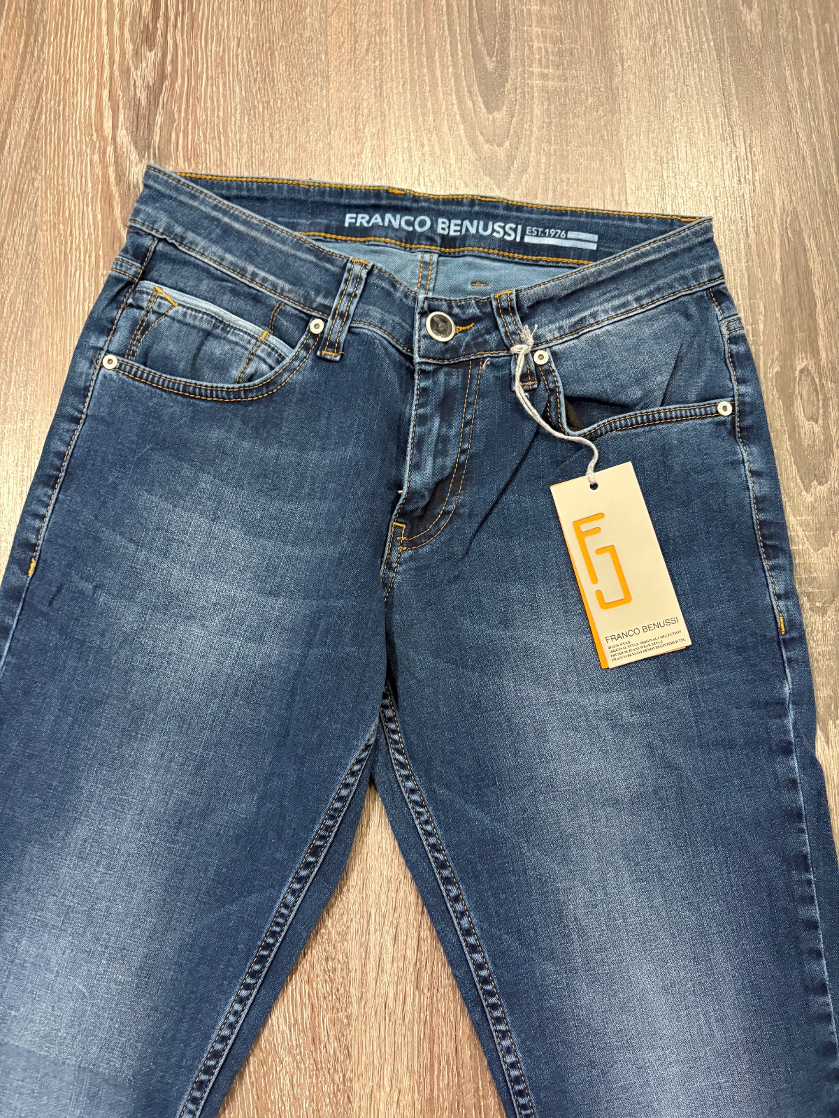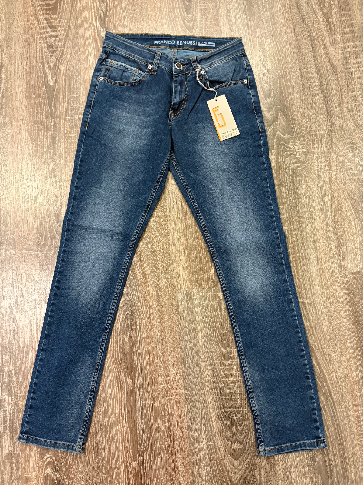 FRanco Benussi nove panske riflove nohavice,komplet s etiketou,PC 55 eur, material bavlna a elastan,velkost W31 L 34,dlzka je 102cm,sirka v pase je od 37x2cm do 42x2cm,predny sed je 23cm a zadny je 35cm,sirka stehna pod rozkrokom je od 29cm do 32cm,sirka dole je 16x2cm