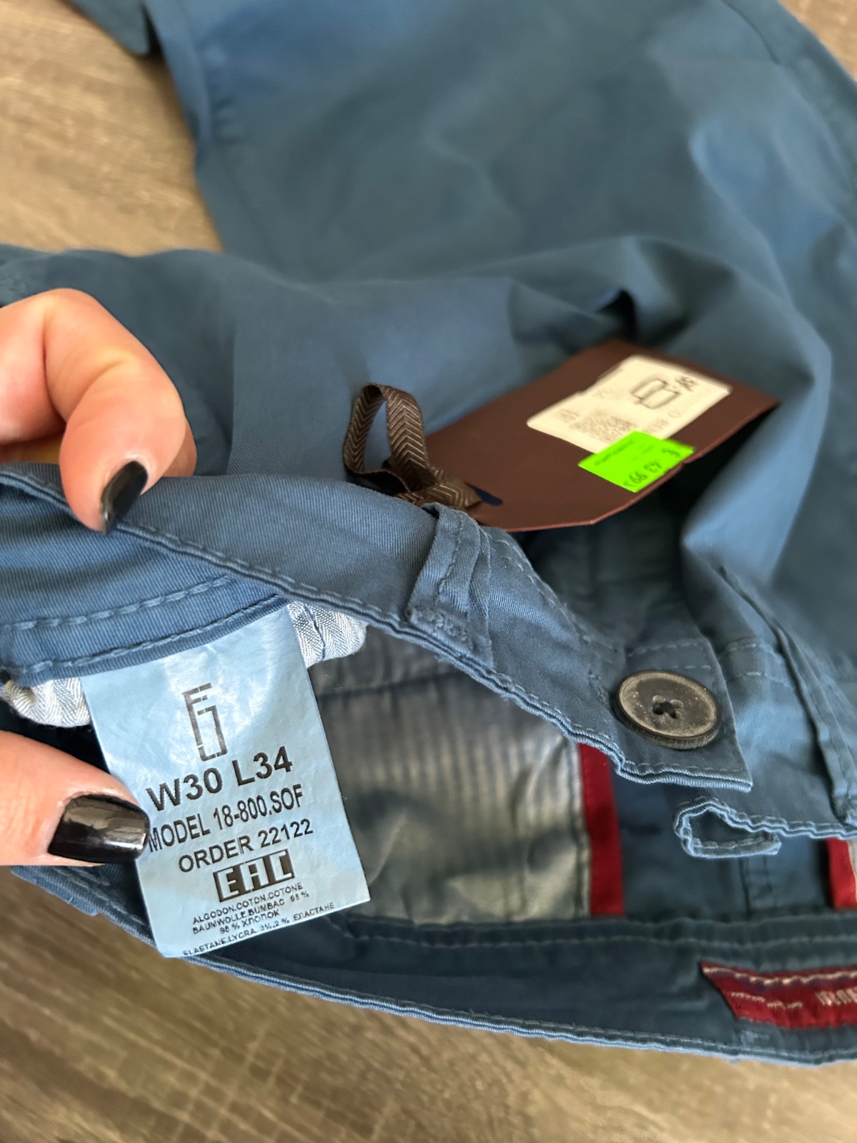 FRanco Benussi nove elegantne nohavice,komplet s etiketou,PC 44eur,velkost W30 L 34,dlzka je 104cm sirka v pase je cca 37x2cm,predny sed je 23cm a zadny je 36cm,sirka v stehna pod rozkrokom je 29x2cm,sirka dole je 18cm