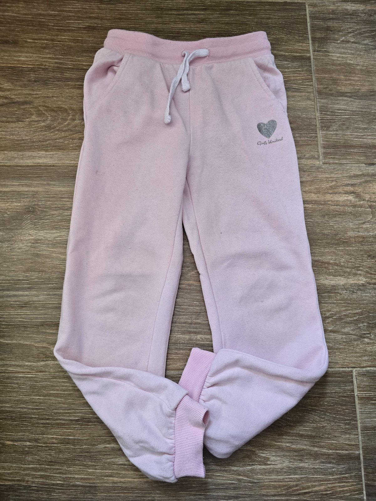 Dievčenské tepláky Dopodopo, 122/128, funkčné vrecká, veľmi dobrý stav. Dĺžka 72 cm, pás 56 cm v kľude, boky 76 cm