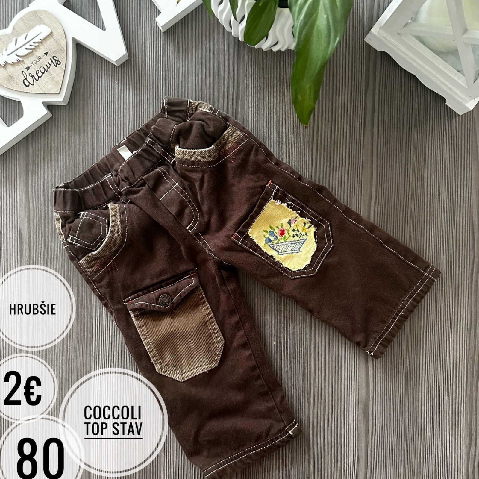 Nenosené menčestraky, zabudli sme na ne v skrini. Velkosť 80. Cena: 3€ plus pošta