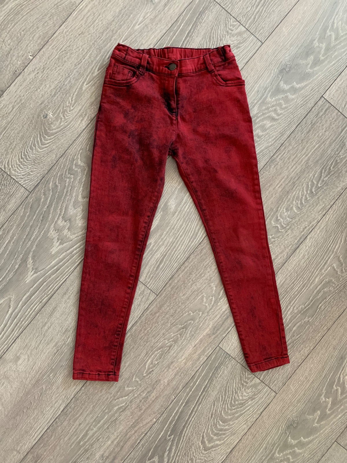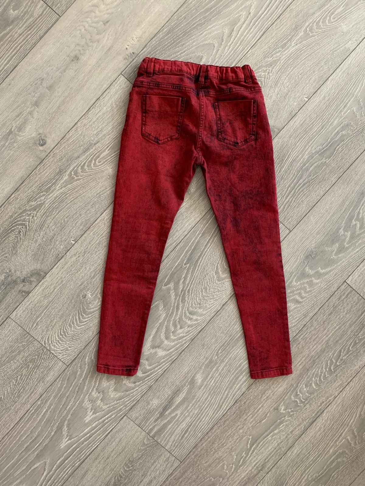 Par krat oblečené kvalitné rifle bordovej farby. Elastické.