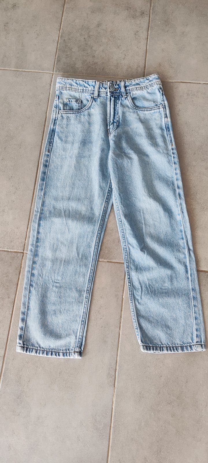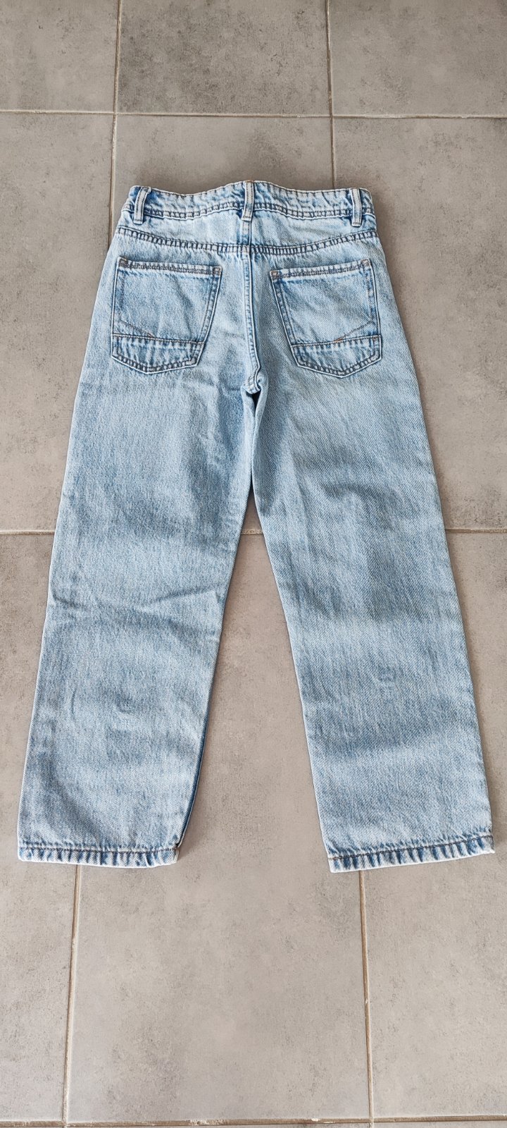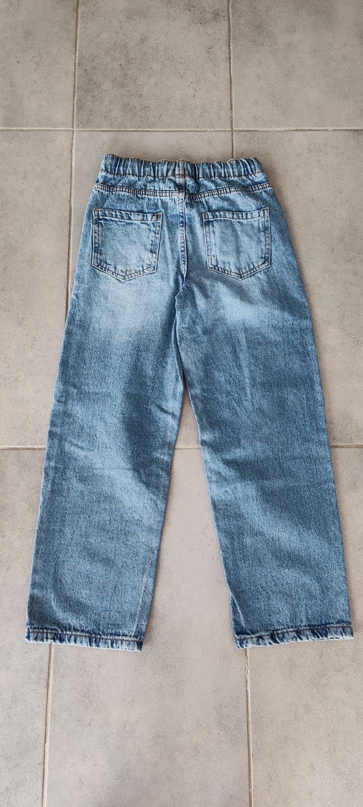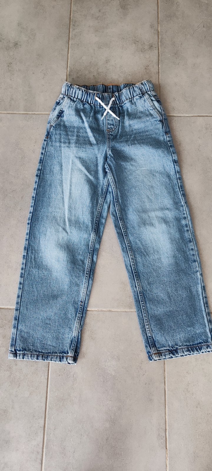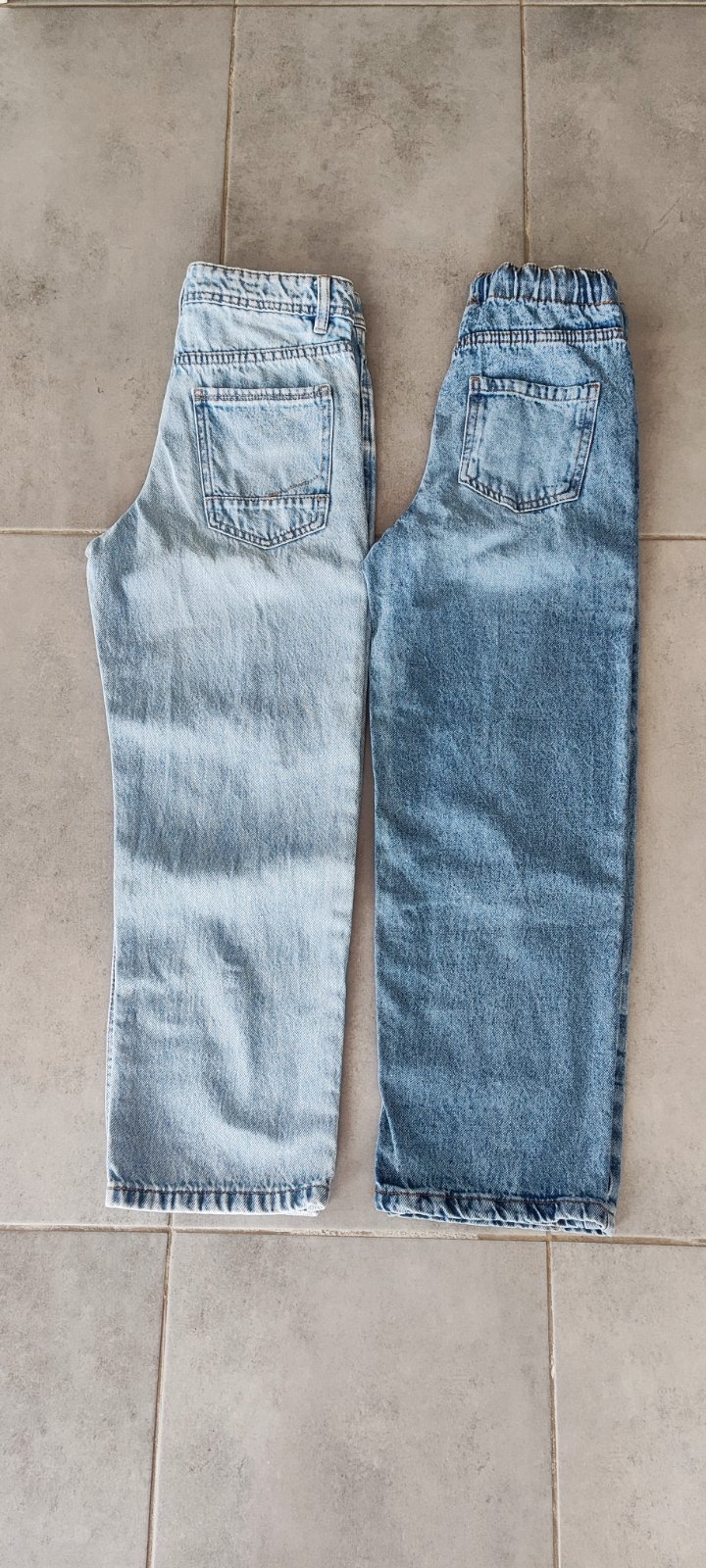Chlapčenské rifle nenosené, len oprané. Tie svetlejšie sú z Takko fashion a druhé z KiK. Celková dĺžka u oboch je 85 cm a šírka v páse svetlejšie 33 cm - majú regulovateľný pás a tmavšie 31 CM - majú šnúrku v páse. Cena spolu 10eur.