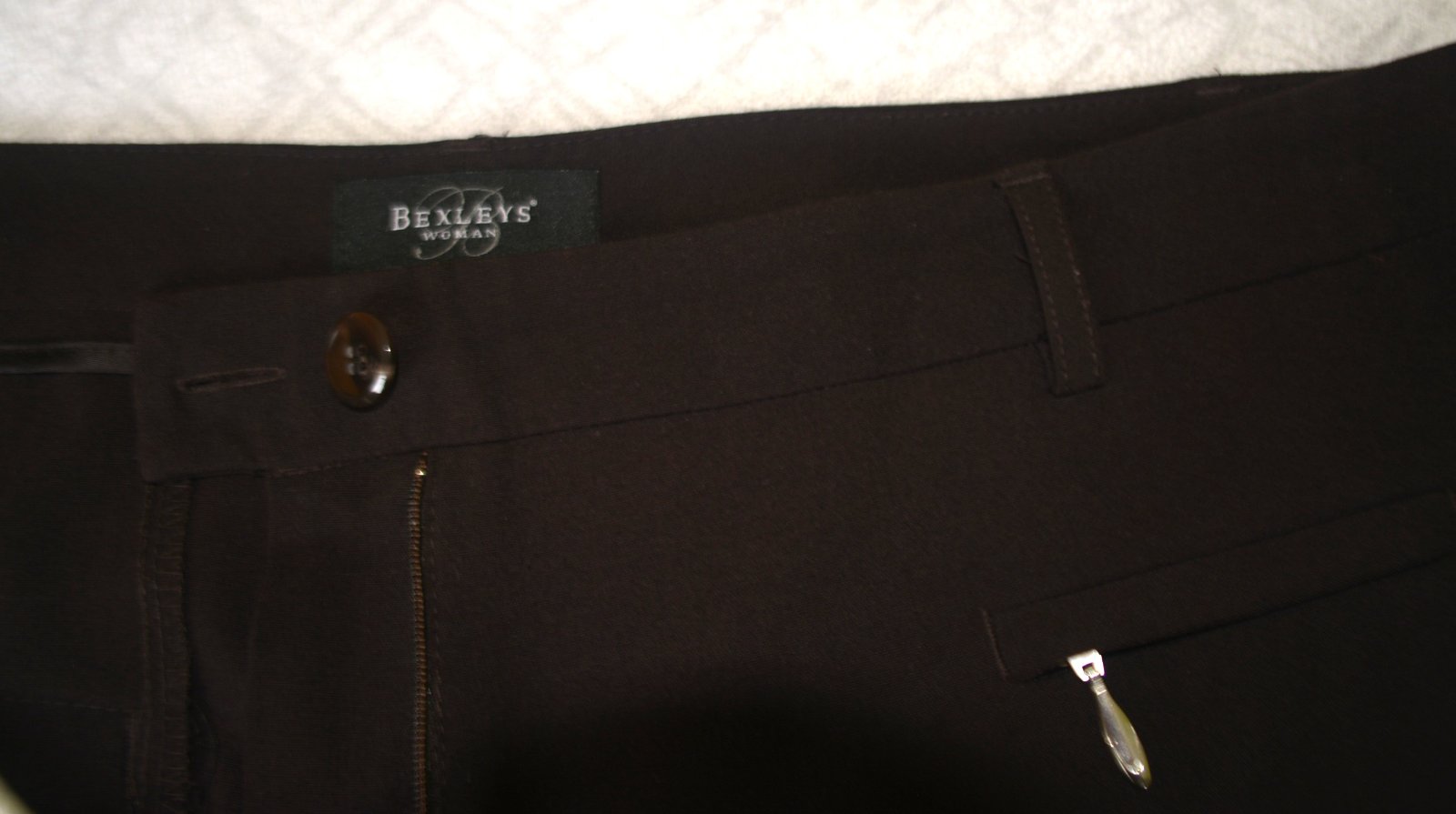 Tmavohnedé nohavice Bexleys, veľ. XL - rozmery: bočná dĺžka 100cm, od rozkroku 74cm, pás do 2x46. Rovný strih, nie zúžené. S elastanom, prispôsobivé postave.