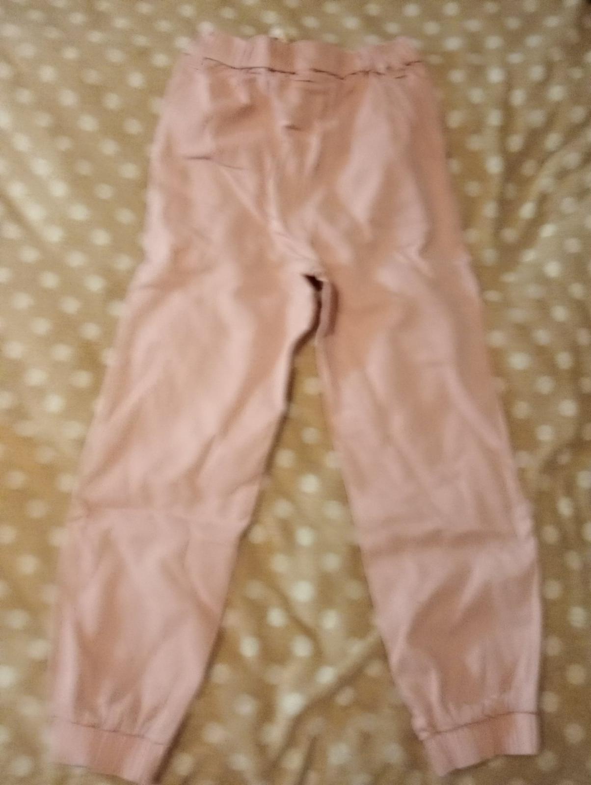 Predám nohavice s peknou aplikáciou. Vhodné na prechodné obdobie. Dve funkčné vrecká, v páse guma. K nohaviciam pridám tričko s 3D aplikáciou, ktoré sa k nohaviciam hodí. Dĺžka 77 CM, vnútorná dĺžka 52 CM, šírka v páse 30-35 CM. Pekný nosený stav.