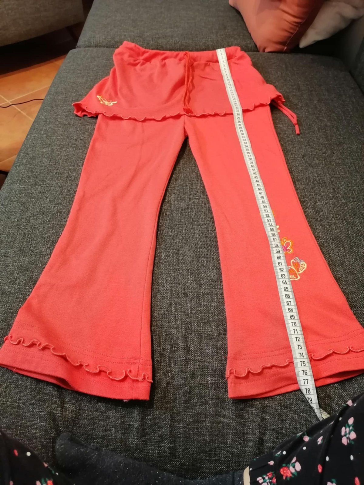 Červené nohavice s imitáciou sukne, veľ. 128
