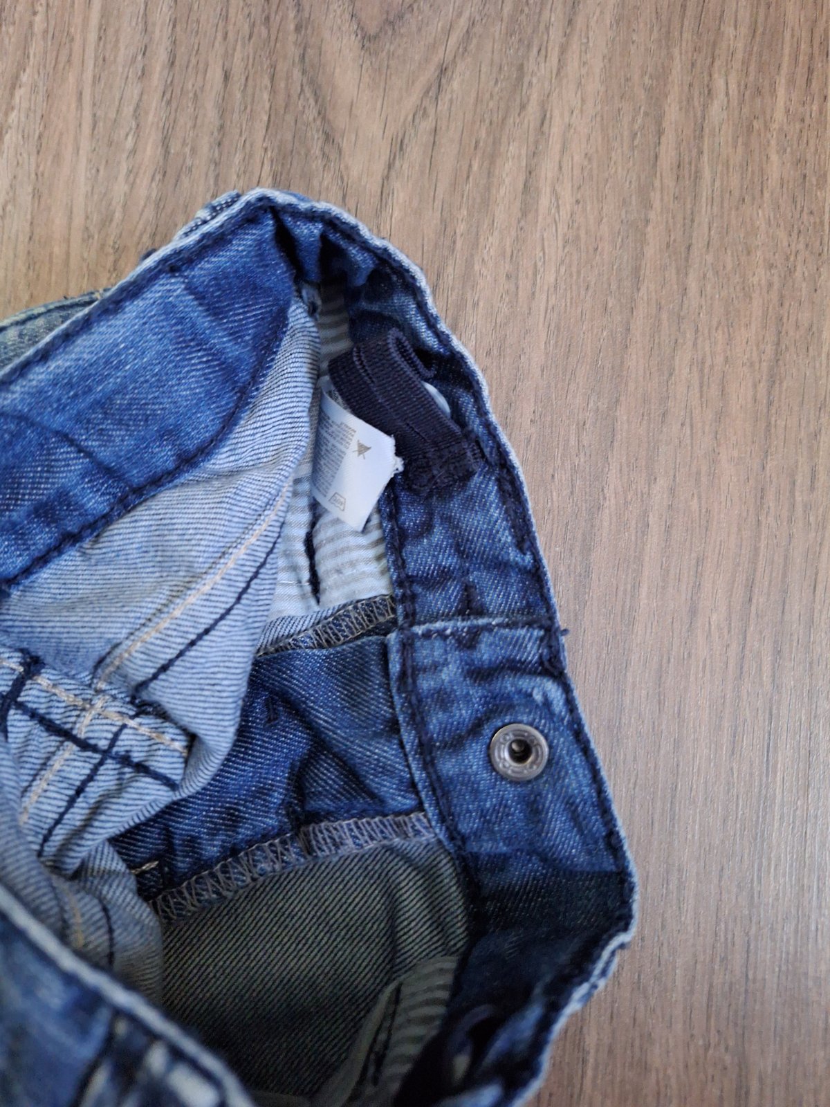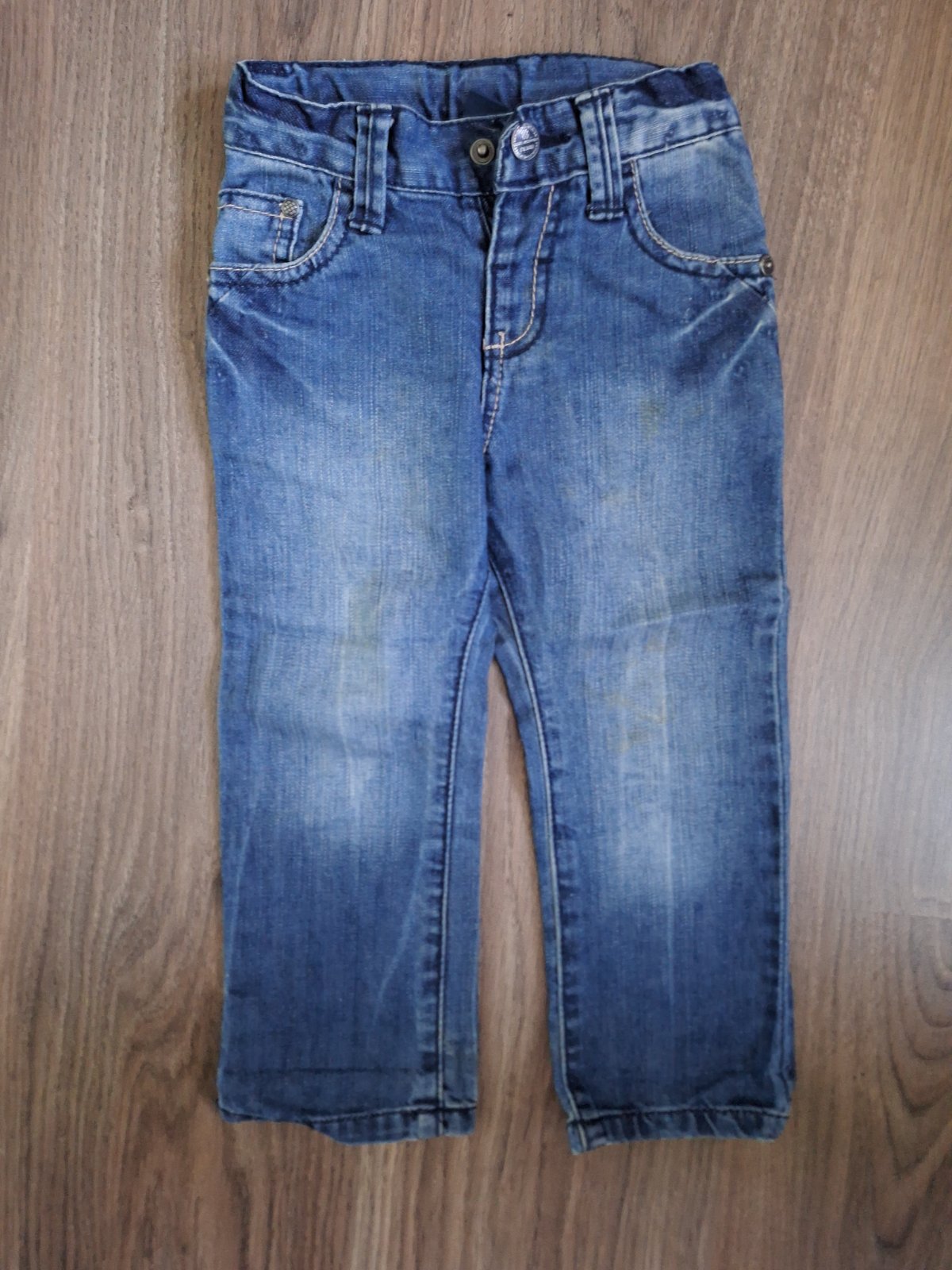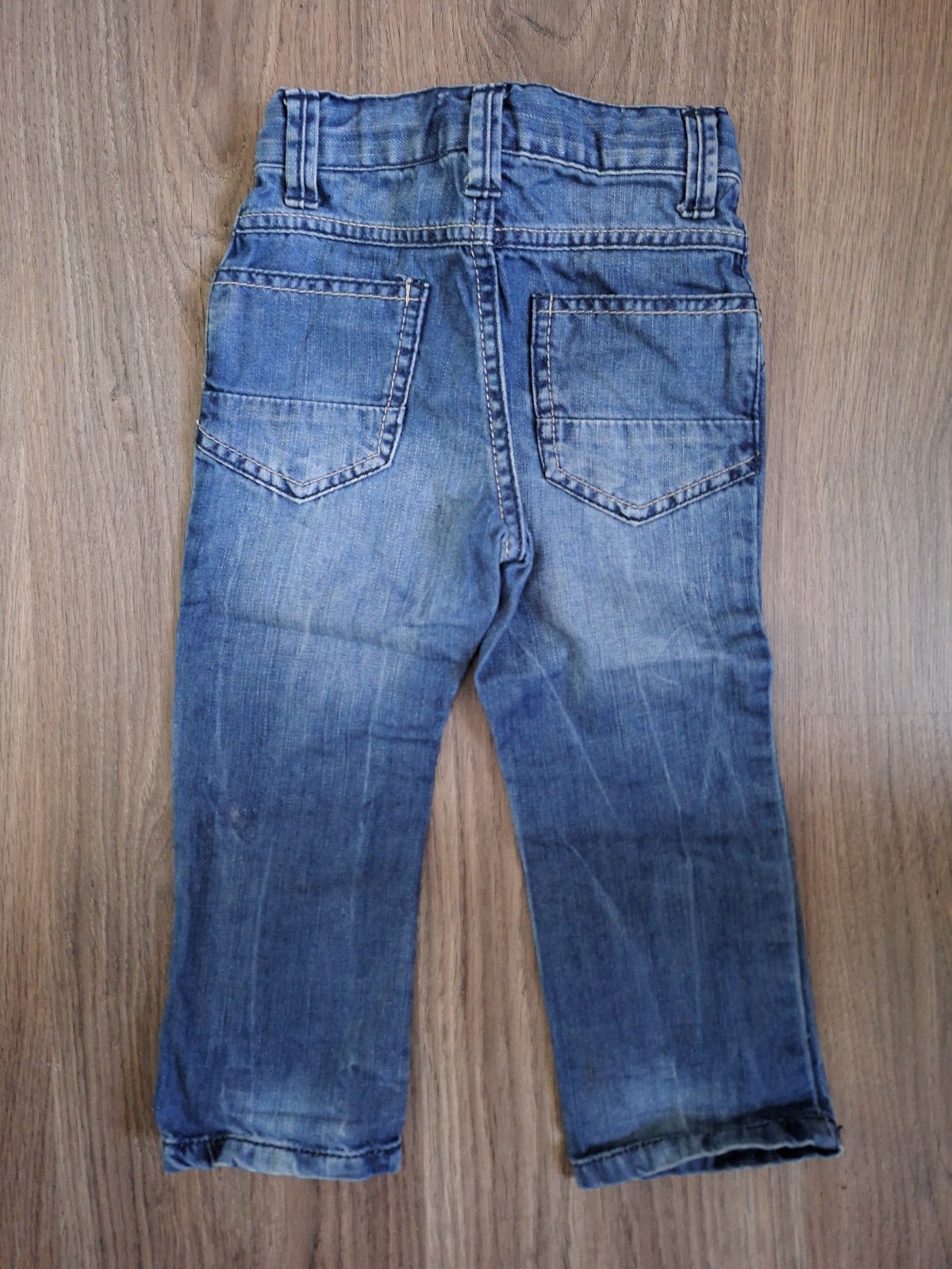 Krásne frajerské rifle, vel. 80, velmi pekná farba rifloviny, v páse nastaviteľná pásová gumička, použité len 2x,bez poškodenia, ako nové, cena 7,50€