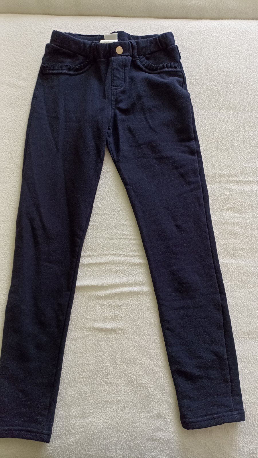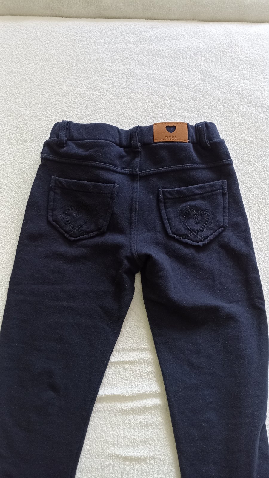 Veľmi pekné pestré nohavice Mayoral, hrubšia teplákovina, trocha vidieť pranie, ale stále pekné, kľudne aj do školy, druhé modré jeginsy v dobrom nosenom stave rovnakej veľkosti pridávam zdarma, se...