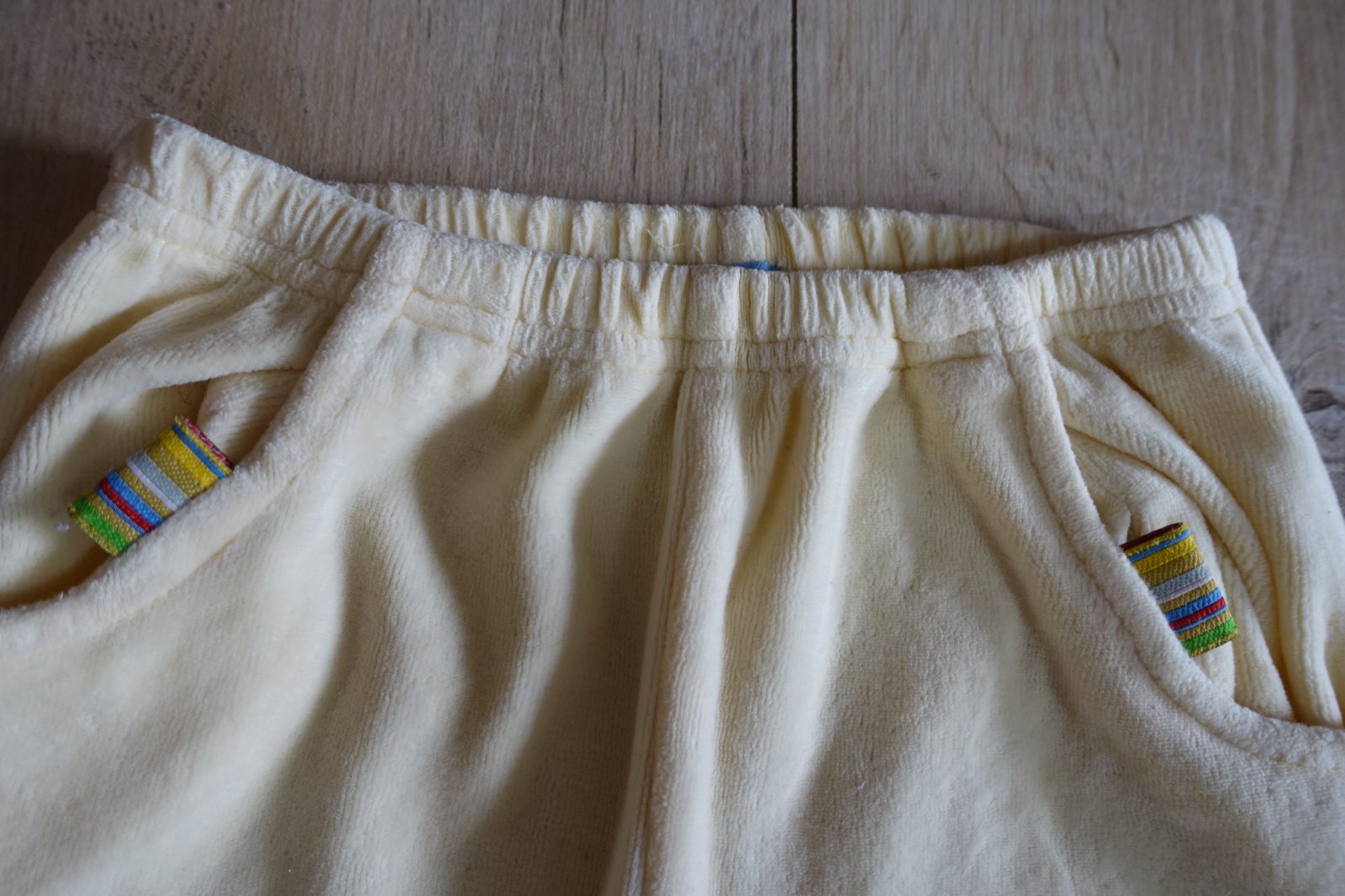 Predám krásne, mäkké a pohodlné velúrové tepláčiky. Majú 2 vrecká. Krásne. Boli nosené, ale sú v peknom nosenom stave. Nosenie vidno, len pri prevrátení nohavíc. Z vnútornej strany majú žmolček. Z opačnej strany sú ako nenosené. Celková dĺžka tepláčikov je 36 cm. Šírka pásu v kľude je 20,5 cm. Pás je na gumičku, natiahne sa. (B)