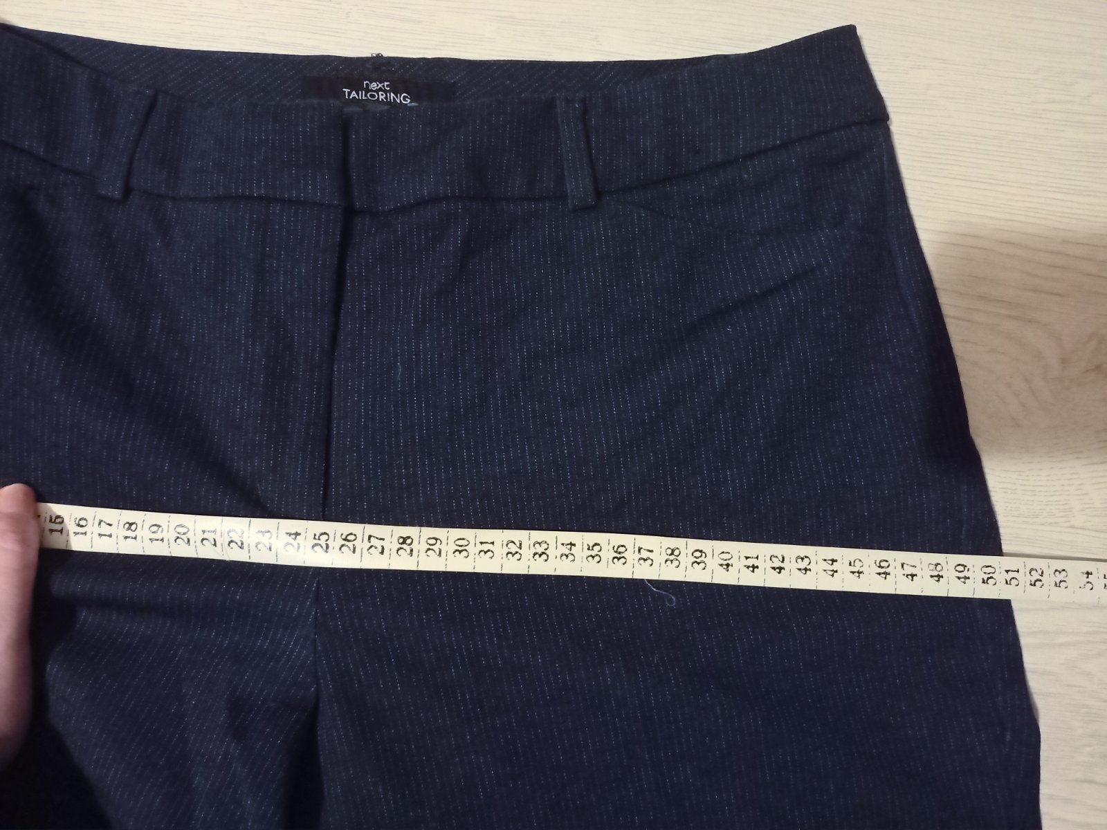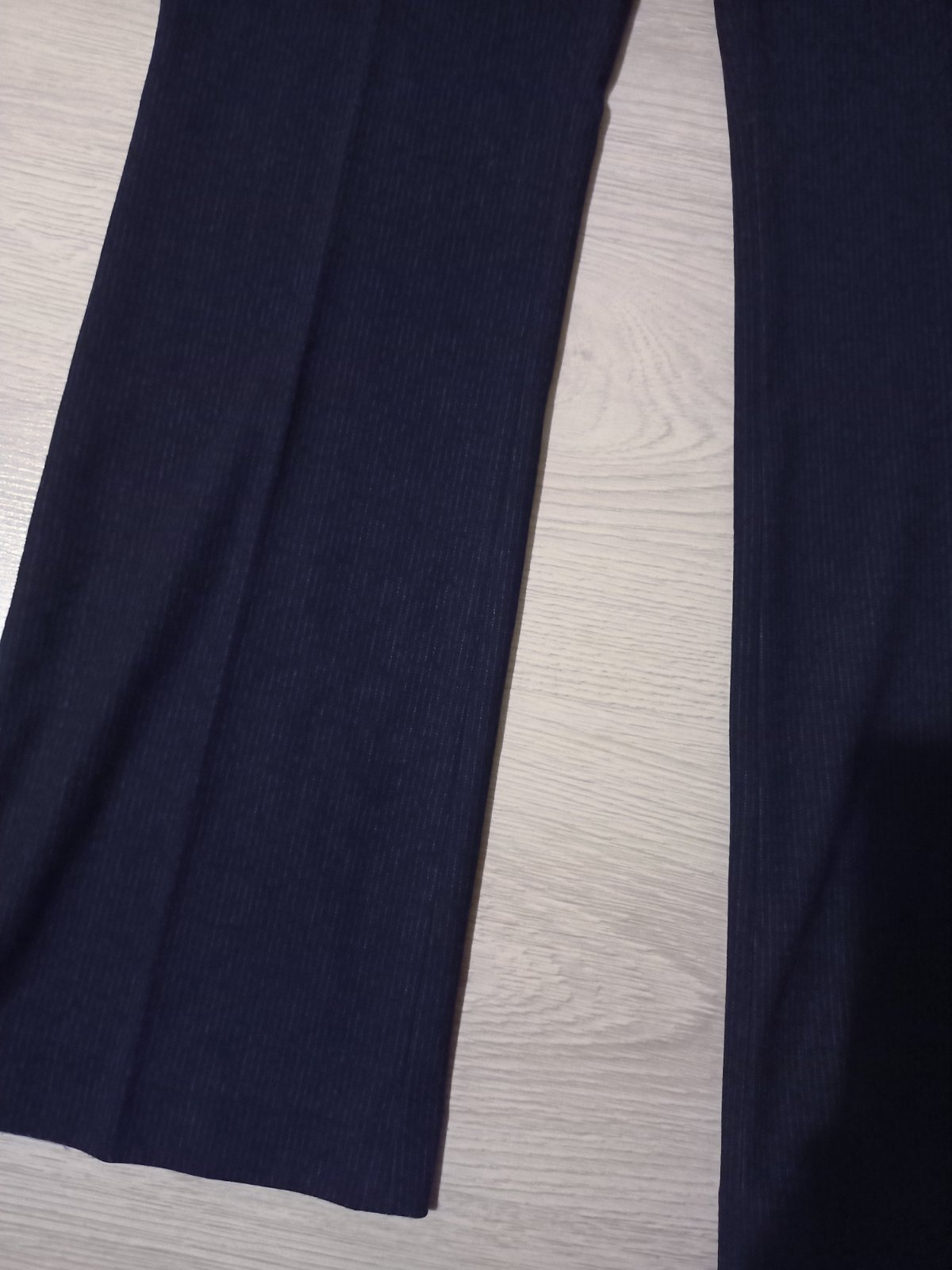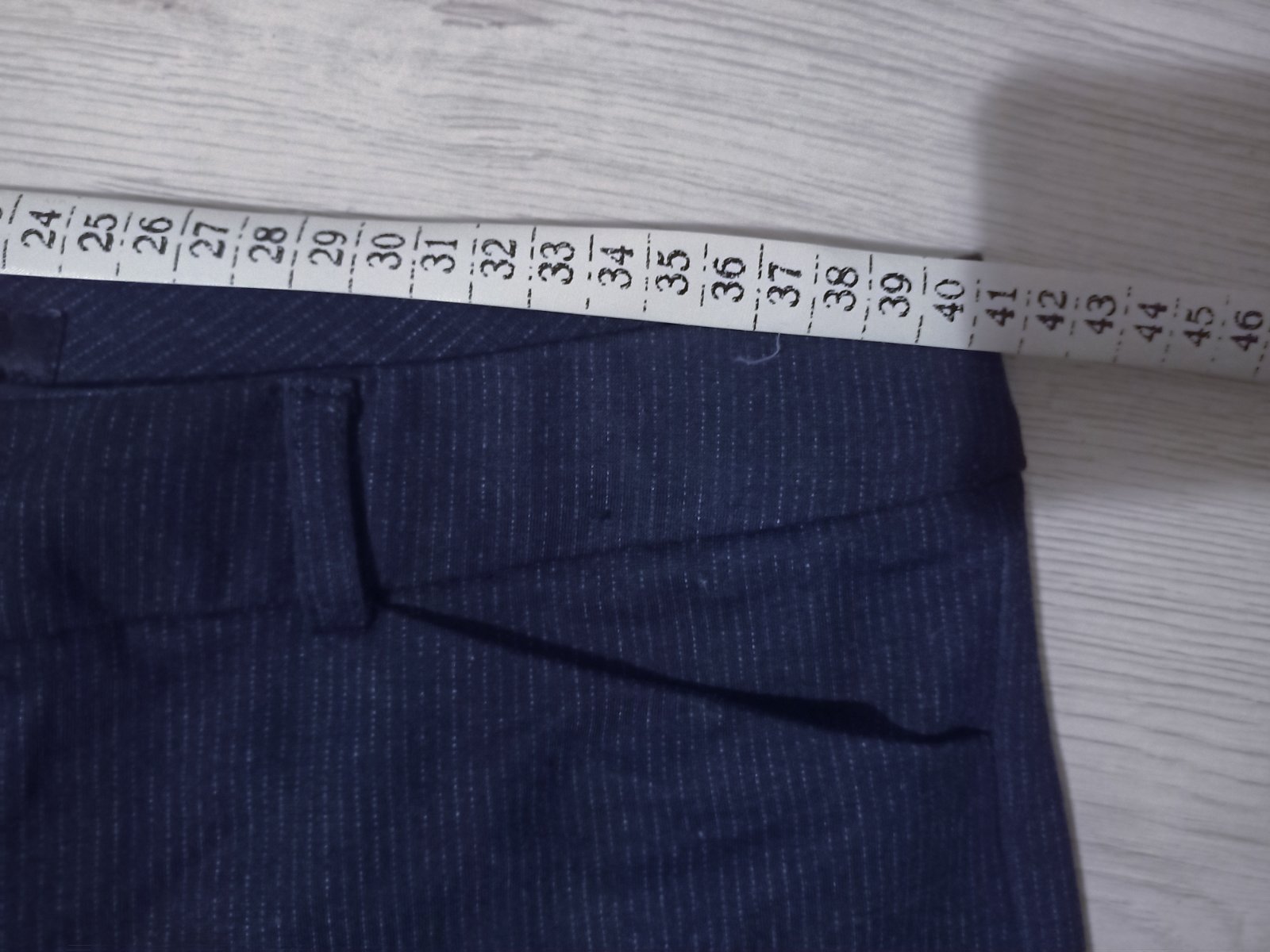Nové elegantné nohavice na puky. Farba tmavomodrá s jemným bielym prúžkom. Jemne elastické. Miery na foto.