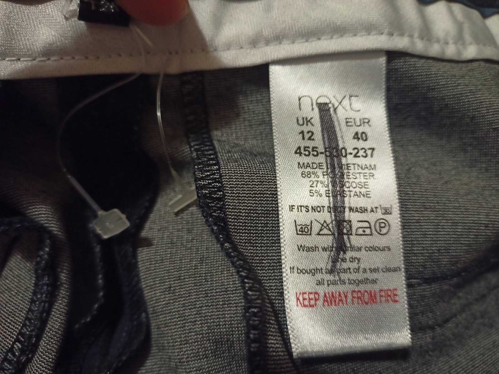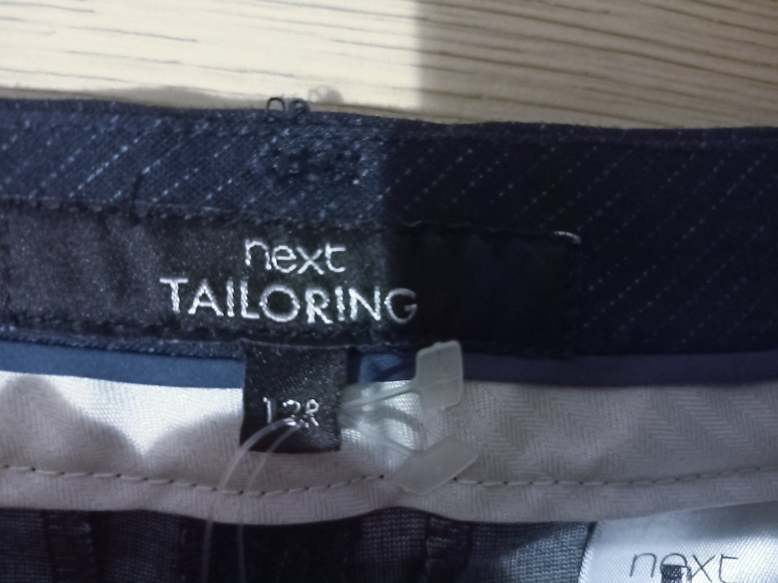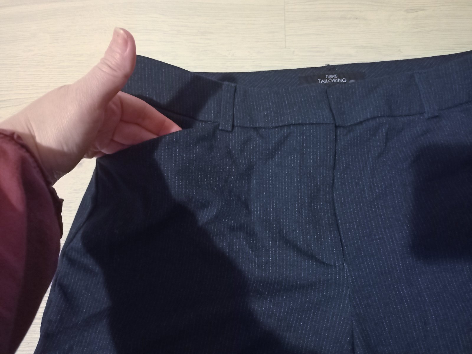Nové elegantné nohavice na puky. Farba tmavomodrá s jemným bielym prúžkom. Jemne elastické. Miery na foto.