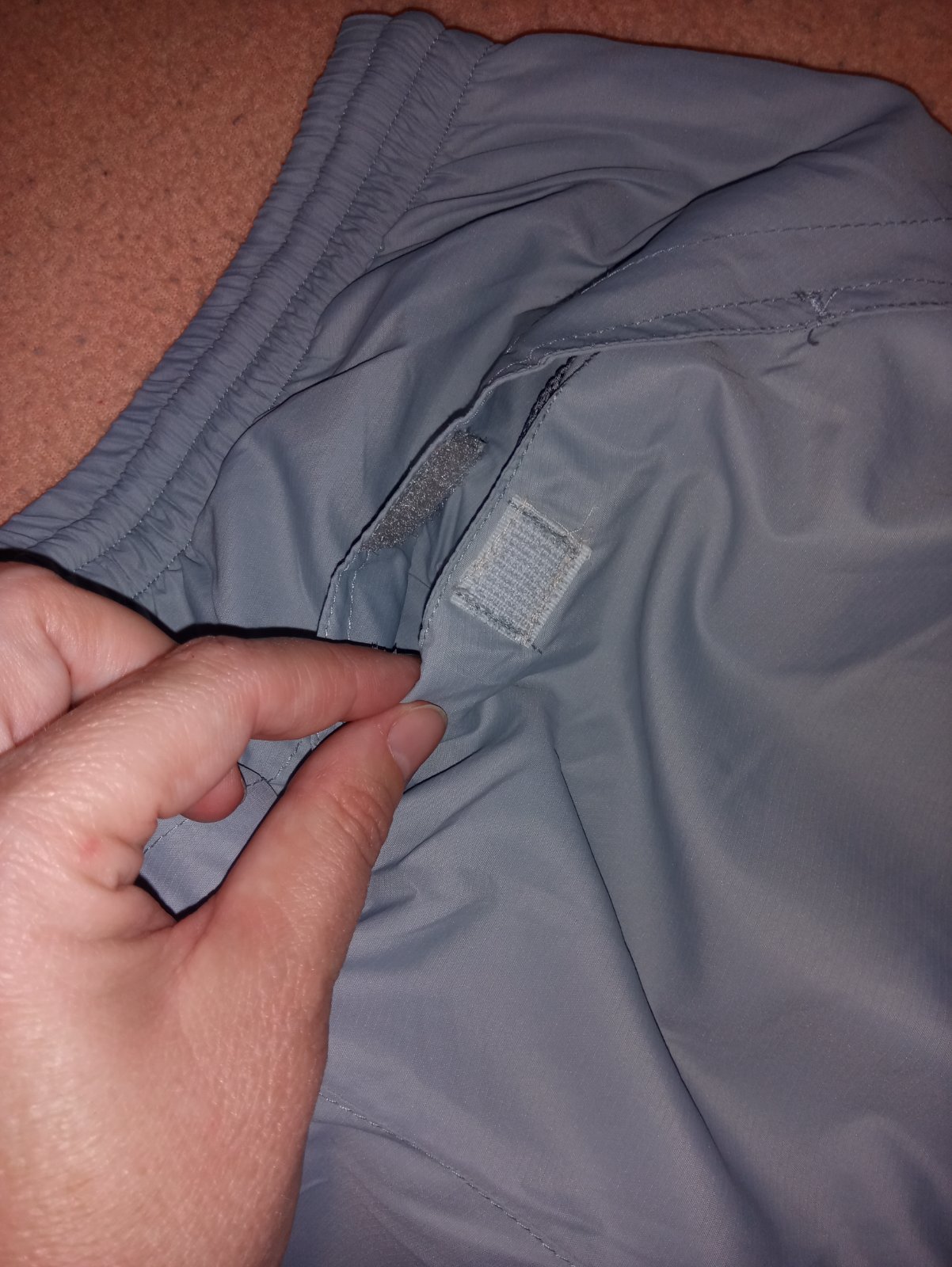 Nenosené, len vyskúšané. Ako nové, top stav. Mäkkučké, príjemné na nosenie - šušťákovina. Veľ.M. V páse guma. Na šport, do záhrady, na doma. Vpredu 2 vačky, vzadu 1 vačok na suchý zips, zvnútra sieťka. Dolu zipsy na zúženie.