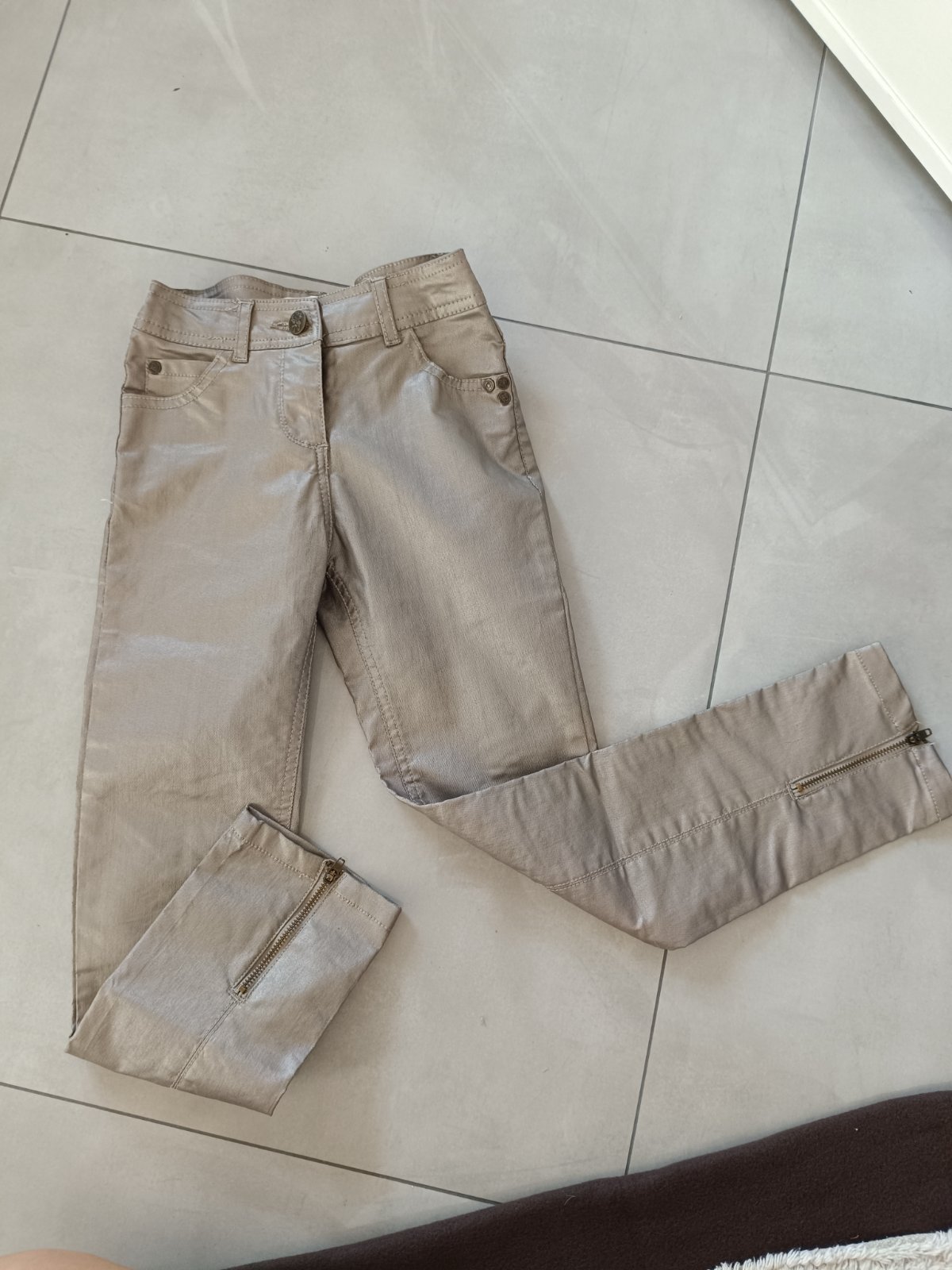 Dievčenské tepláky, top stav, pás na gumu aj snurky, nápis trblietavý, premeriam, uvedená vel.134 ale su menšie Cena 4 eurá + pošta,