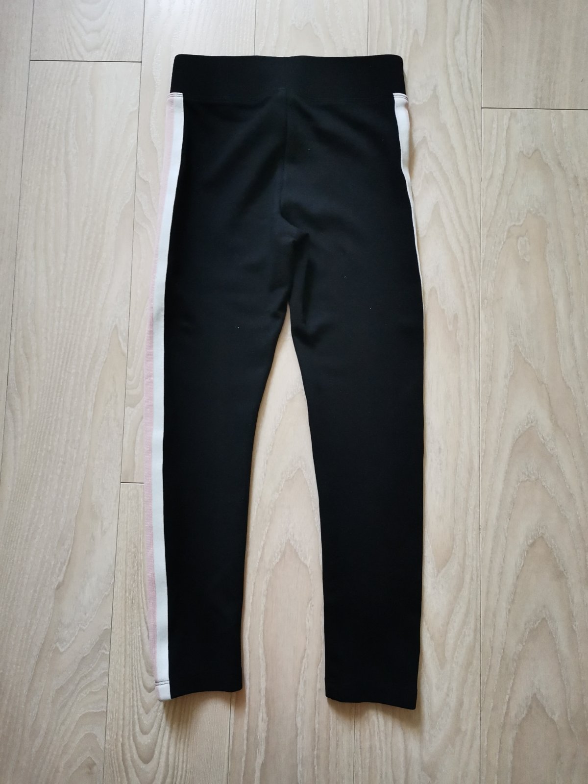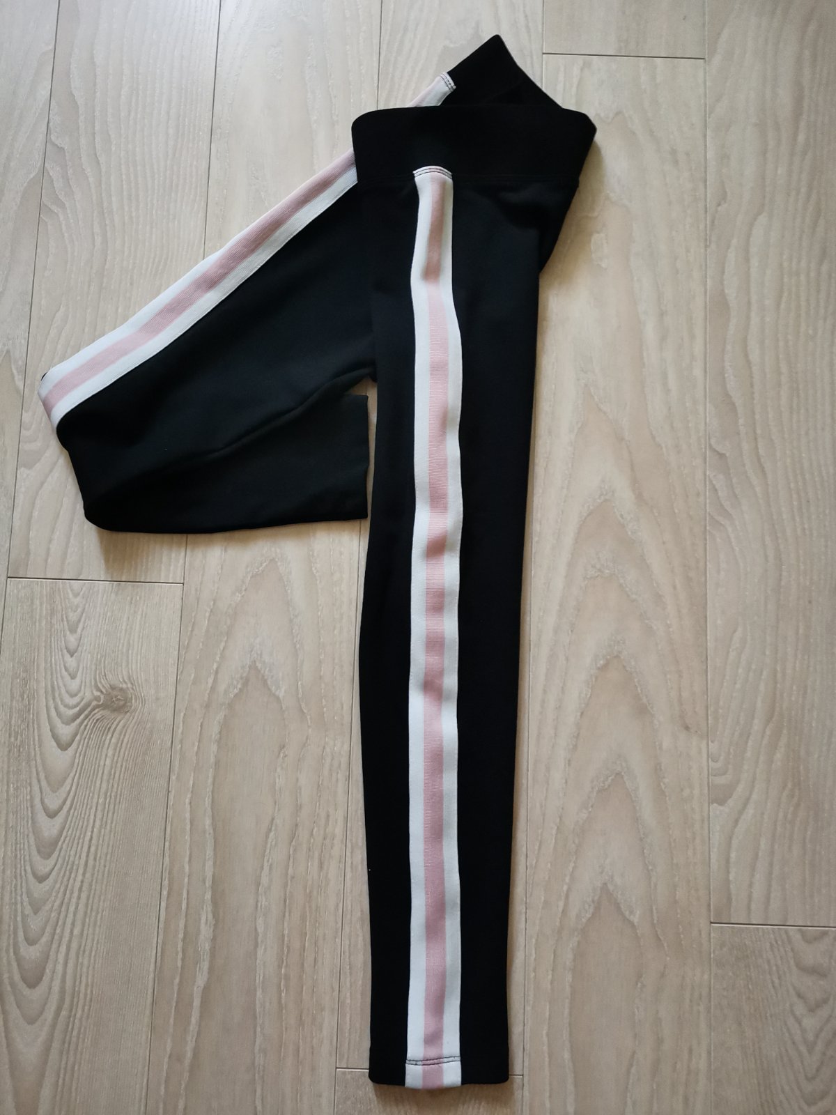 Ponúkam tieto dievčenské nohavice zn. LINDEX, čiernej farby na boku s červeným pásikom, na spodu ohrnuté, bočné vrecká, bez zapínania, vzadu v páse na gumu, sú v perfektnom stave ako nové, veľkosť ...