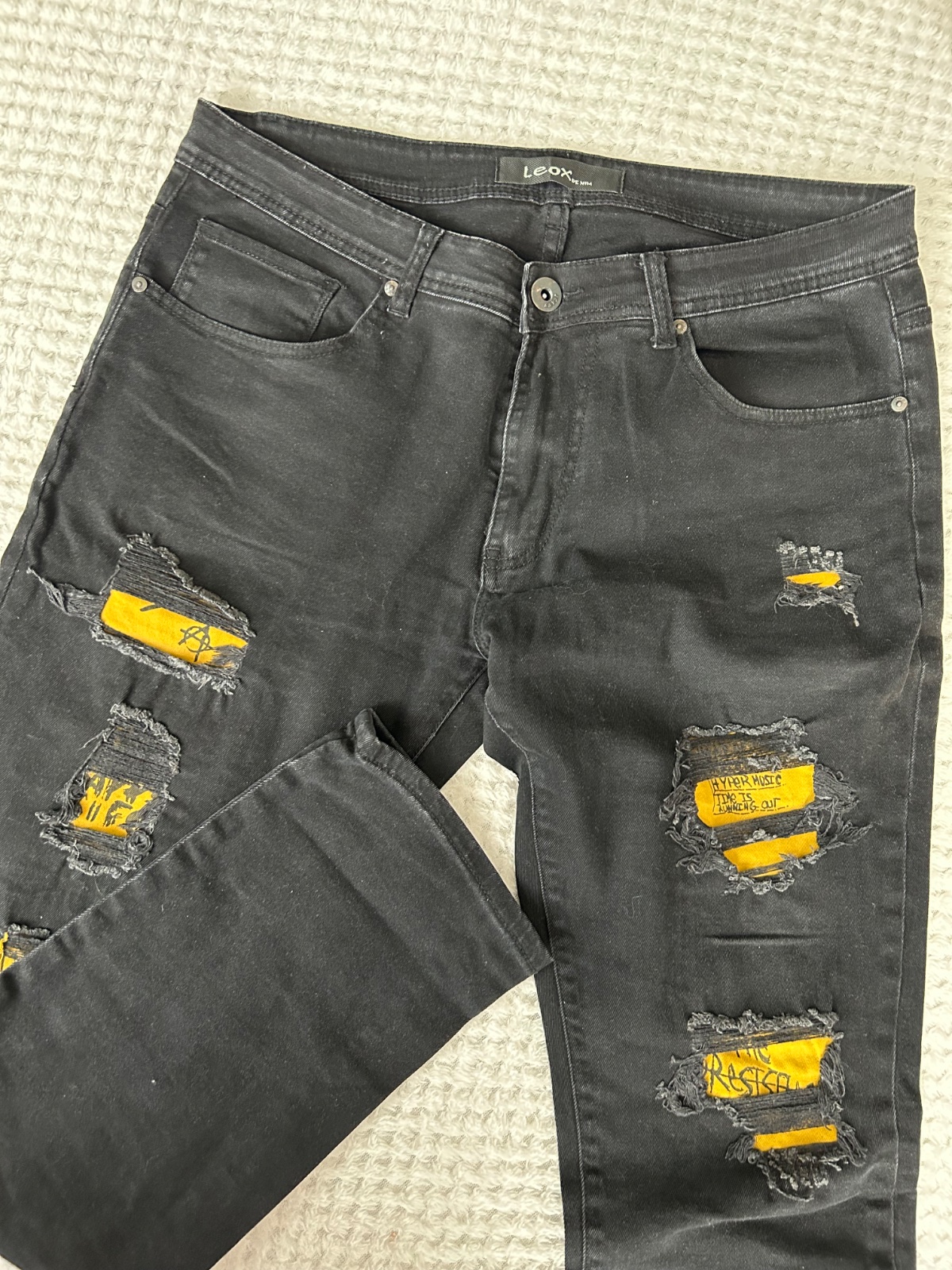 Slimky mega elasticke cierne gate pre chalanov okolo 15rokov. Raz oblecene Velkost EUR36