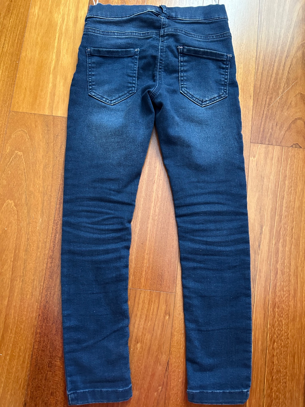 Rifle tmavomodrá farba. Zapínanie na zips + gombík, vnútri gumička pre nastavenie šírky pása. Veľmi zaujímavo riešené vrecká - 3 vpredu a 2 vzadu. Rovný strih. Stav veľmi dobrý – párkrát oblečené, ...