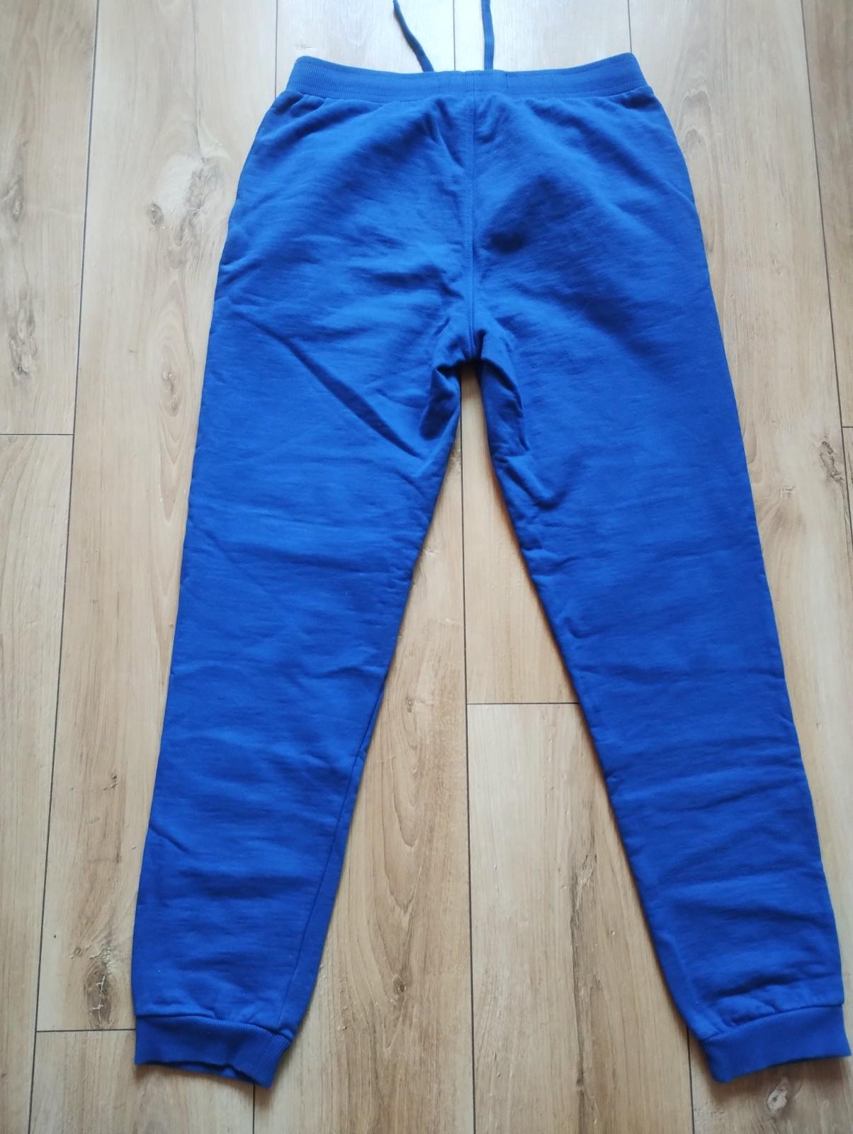Teplákové nohavice bez známok nosenia, zn. Terranova. Vonkajšia dĺžka 87 cm, vnútorná 65 cm, patent + 6 cm, sed vpredu 21 cm, vzadu 34 cm. Dostupné aj v bordovej farbe.