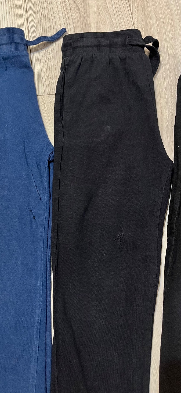 Detske teplaky nosene do skolky, avsak syn na nich spravil dierky, ktore som zasila. Na doma, na dvor stale vhodne.