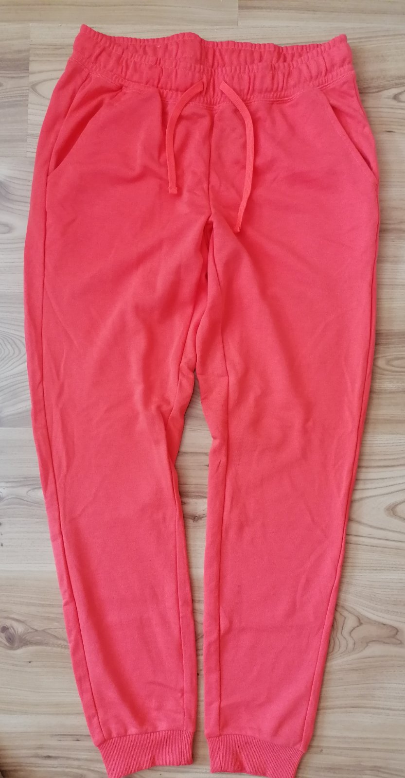 Stredne hrube--teple---flisove....bez chýb-...farba je taka ako na fotke....lososovo-oranžova.....dlž-101/71cm,pas.-36 az 45x2cm--su poddajne....predný sed-35cm...stehno-32x2cm...sirka na spodku n...