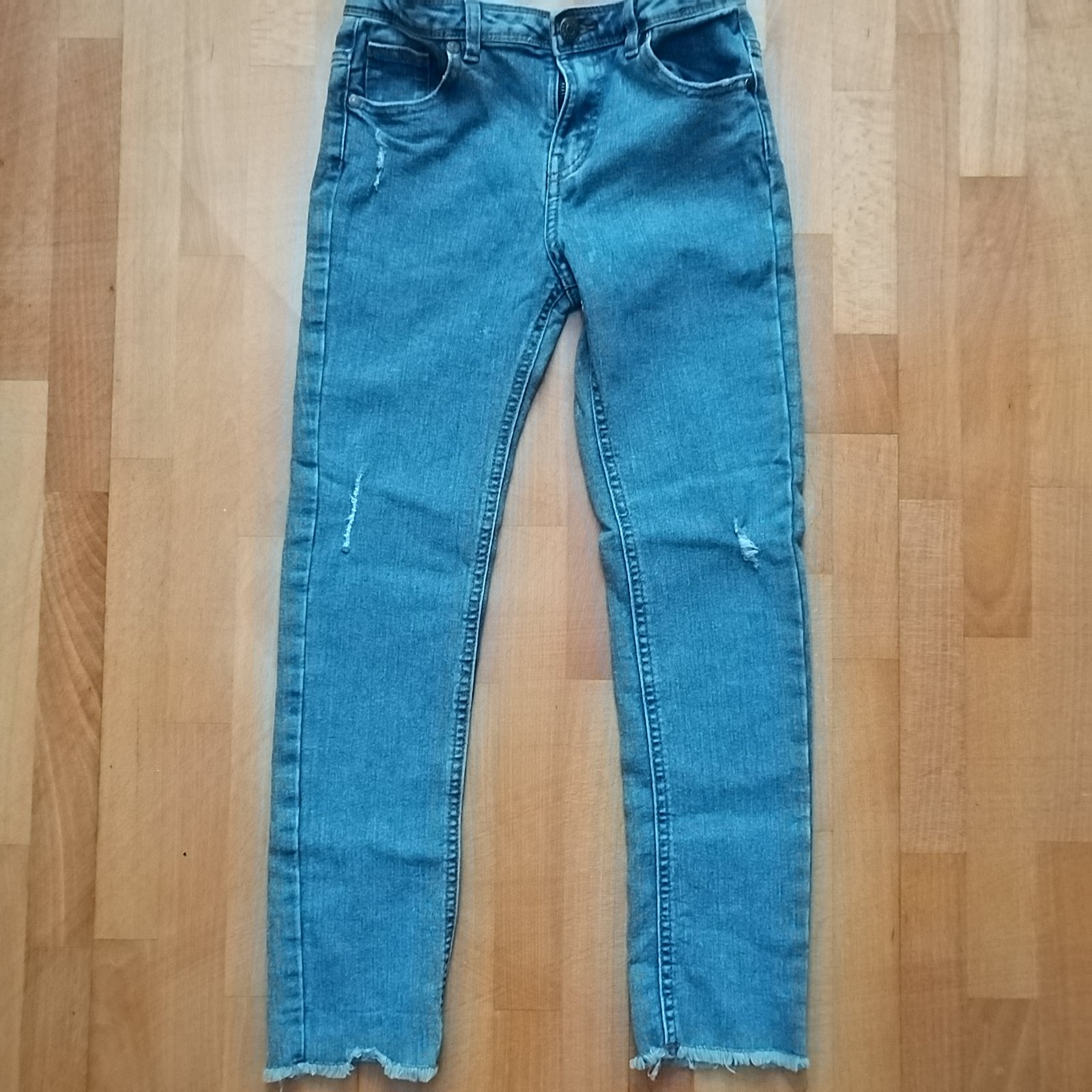 Krásne tenšie rifle značky Sinsay, veľkosť 134. Boli iba oprane. Pás je na gumu takže sa super prispôsobí. Dĺžka 74-75cm a pás v kľude 30cm