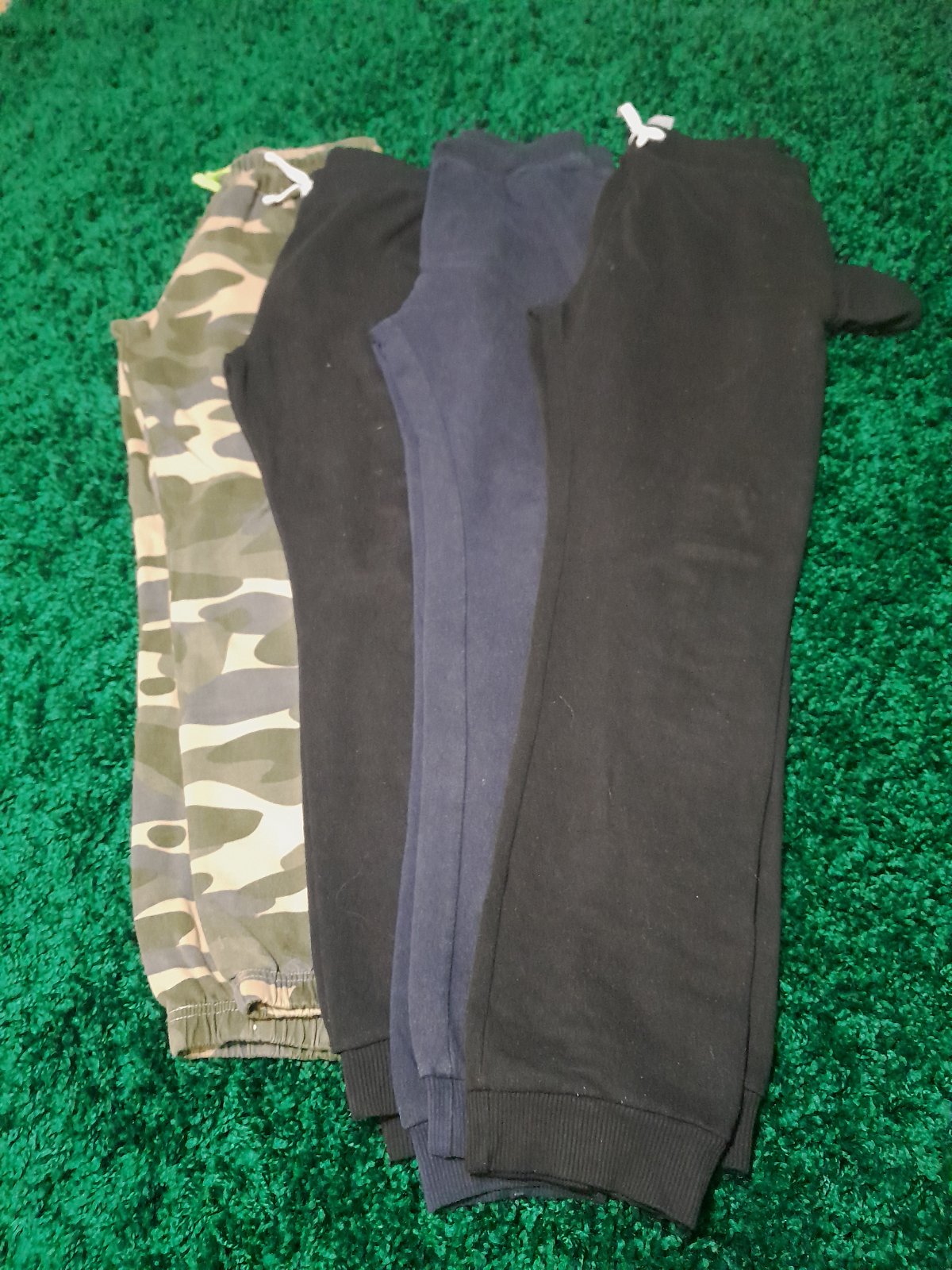 Zachovalé tepláky + 4 gratis na donosenie. Veľkosť 158-164 cm. Dĺžka 95 cm, šírka 34cm.