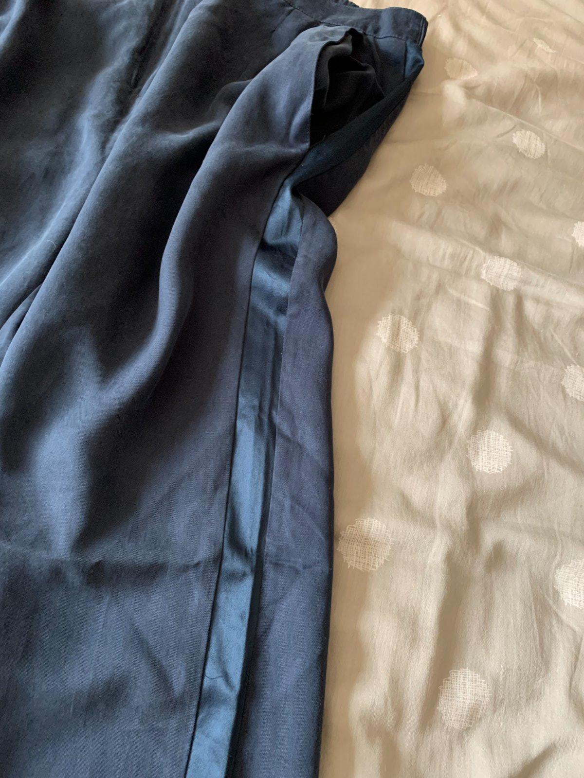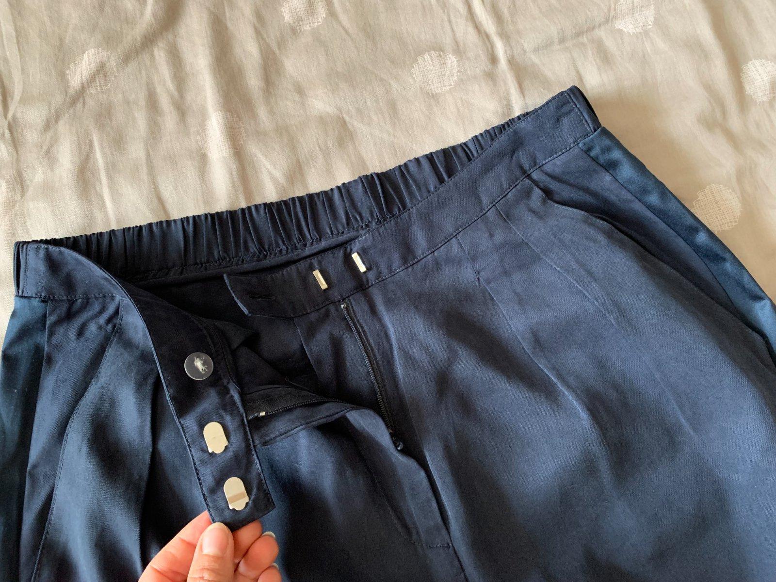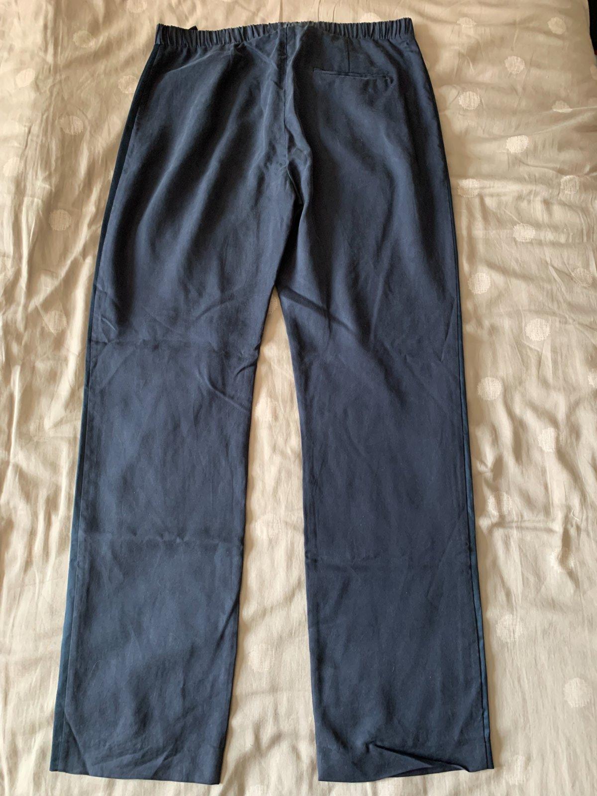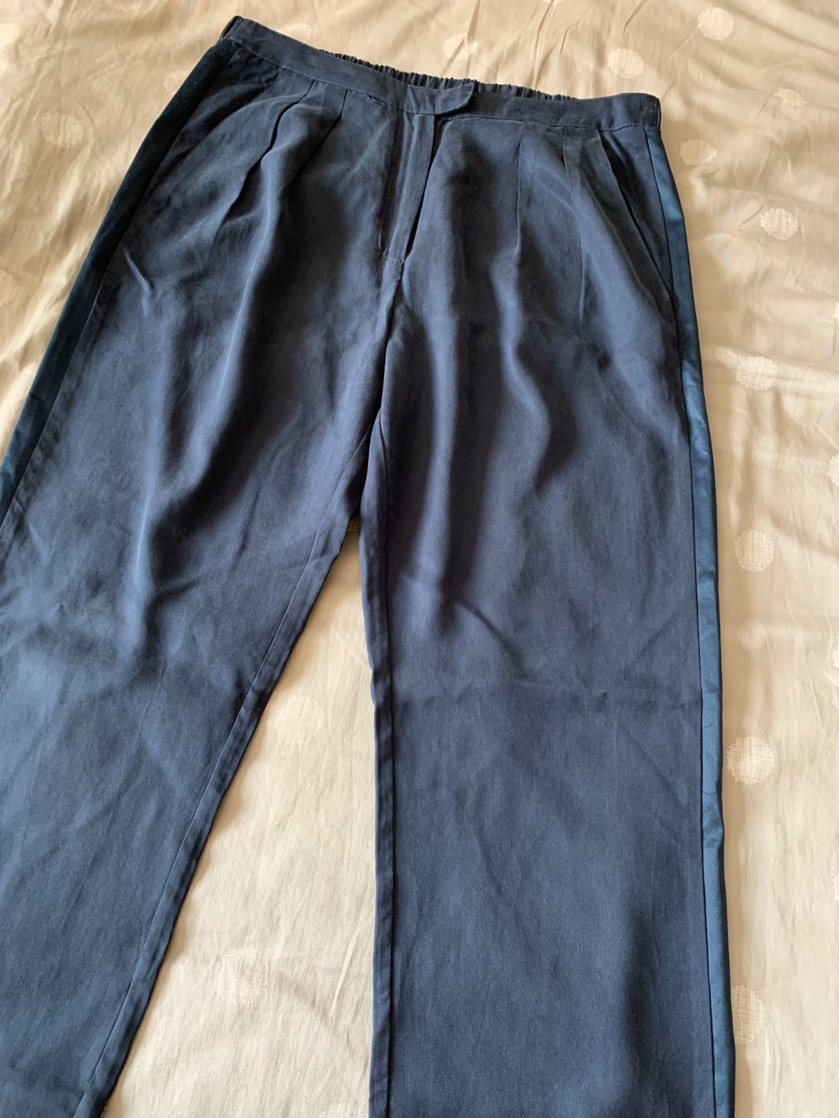 Ľahučké letné nohavice s lesklým pásom na bokoch. Veľmi dobrý stav bez poškodení. Štítok so značkou a veľkosťou odstrihnutý, tak na foto aspoň štítok so zložením, kde je aj značka.