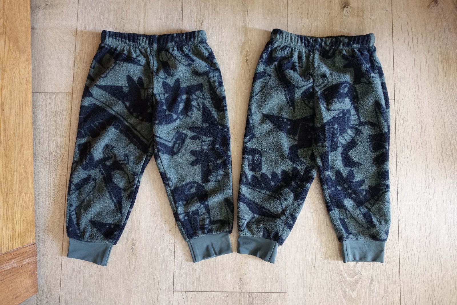 Predám krásne, mäkké a pohodlné hrubšie flísové tepláčiky, ideálne na prechod. Nie sú podteplené, len hrubšie. Majú síce veľkosť 92, ale na veľkosť určite nesedia, riaďte sa prosím rozmermi, nám boli dobré vo veľkosti 98. Obe tepláčiky majú troška iný vzor, aj keď sú z rovnakej kolekcie. Prvé sme mali max 1-2x, tie sú top stav, druhé sme nosili pár krát na striedačku aj s inými. Tie sú pekné, len majú malú chybičku krásy, úplne dole na patente z oboch strán sa nám troška prichytili patenty na lepku od tenisiek, trolinka majú na nich žmolčeky. Viď foto. Okrem týchto žmolčekov na patentoch sú celé v peknom stave. Nemajú ani fľaky, ani žmolky, ani diery. Celková dĺžka tepláčikov je 53 cm a šírka pásu v kľude je 22 cm. V páse je guma. Predám aj jednotlivo. Prvé sú v cene 6 eur a druhé v cene 5 eur. (V09)