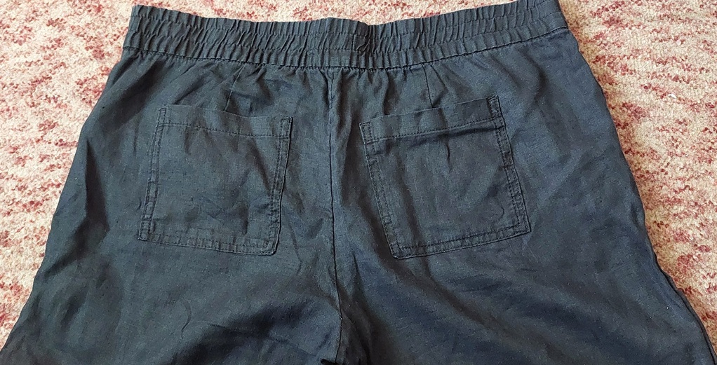 100% plátno predné a zadné vrecká, guma v páse dĺžka: 104cm, vnútorná dĺžka: 75cm, pás: 43cm (roztiahnuť až na 50cm) šírka v kolene 24,5cm, na spodku 21cm