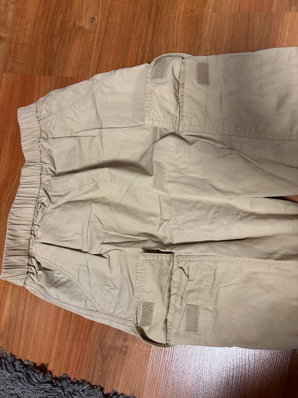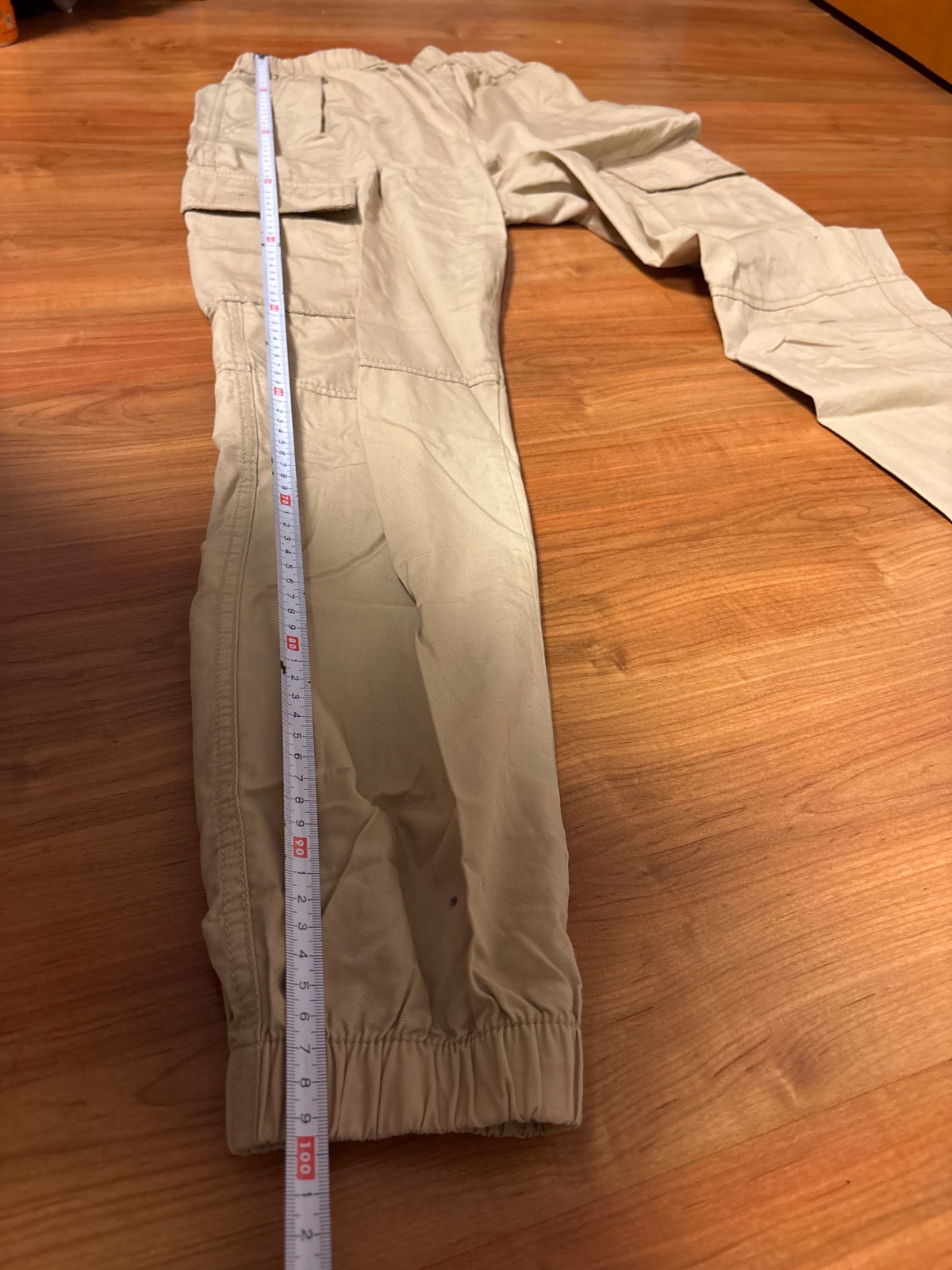 Farba jasnejšia ako na foto. Celková dĺžka 4 pás + 101 cm, dĺžka od rozkroku 77,5 cm, šírka v páse 39 cm - majú sťahovaciu gumičku, šírka v stehne 28,5 cm. Materiál 100 % bavlna. Dva krát oblečené....