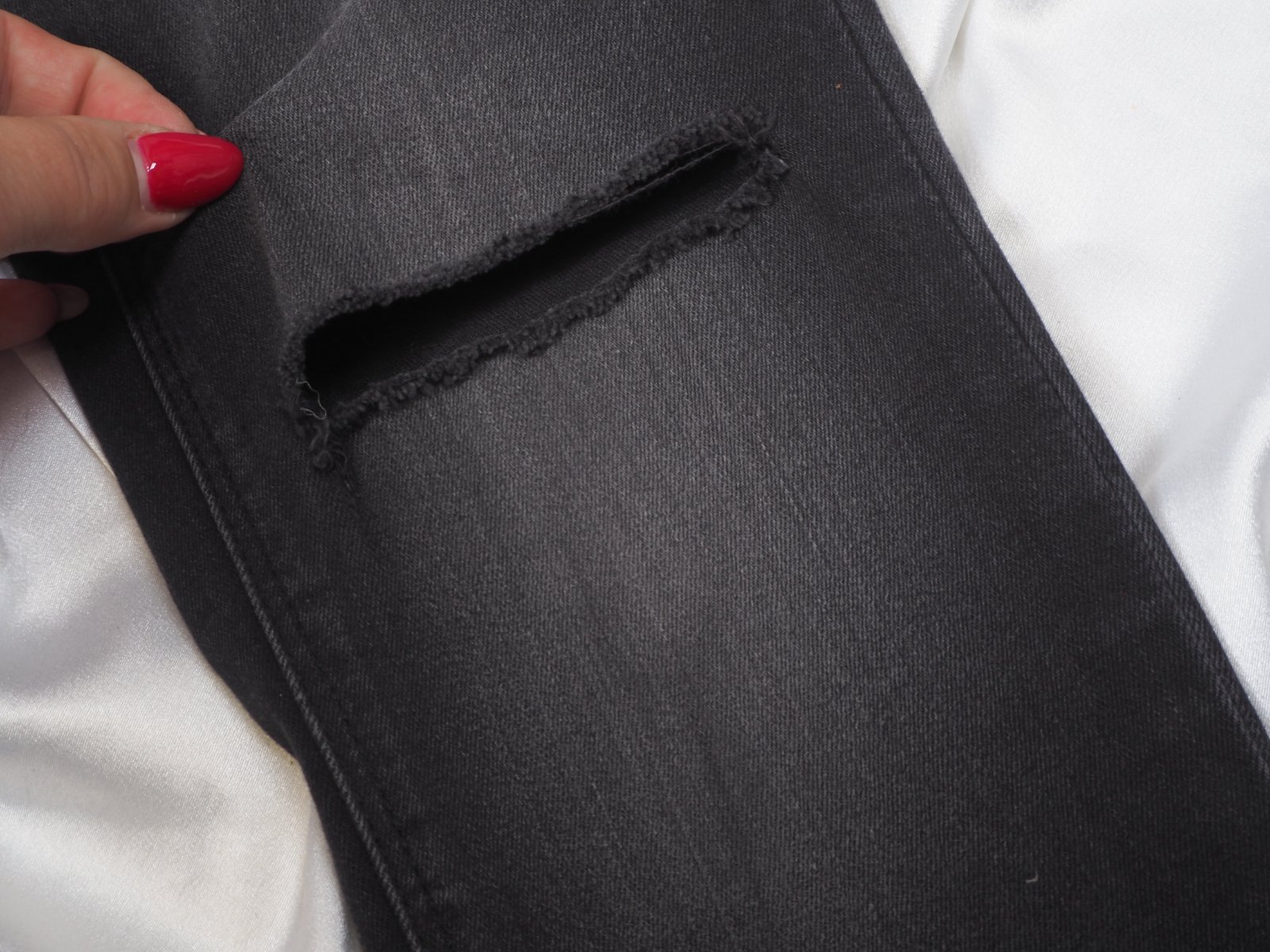 Kvalitné čierne rifle, zapínanie na zip a gombík, vysoký pás, originál diera na kolene, materiál 98% bavlna, 2% elastan, super stav.