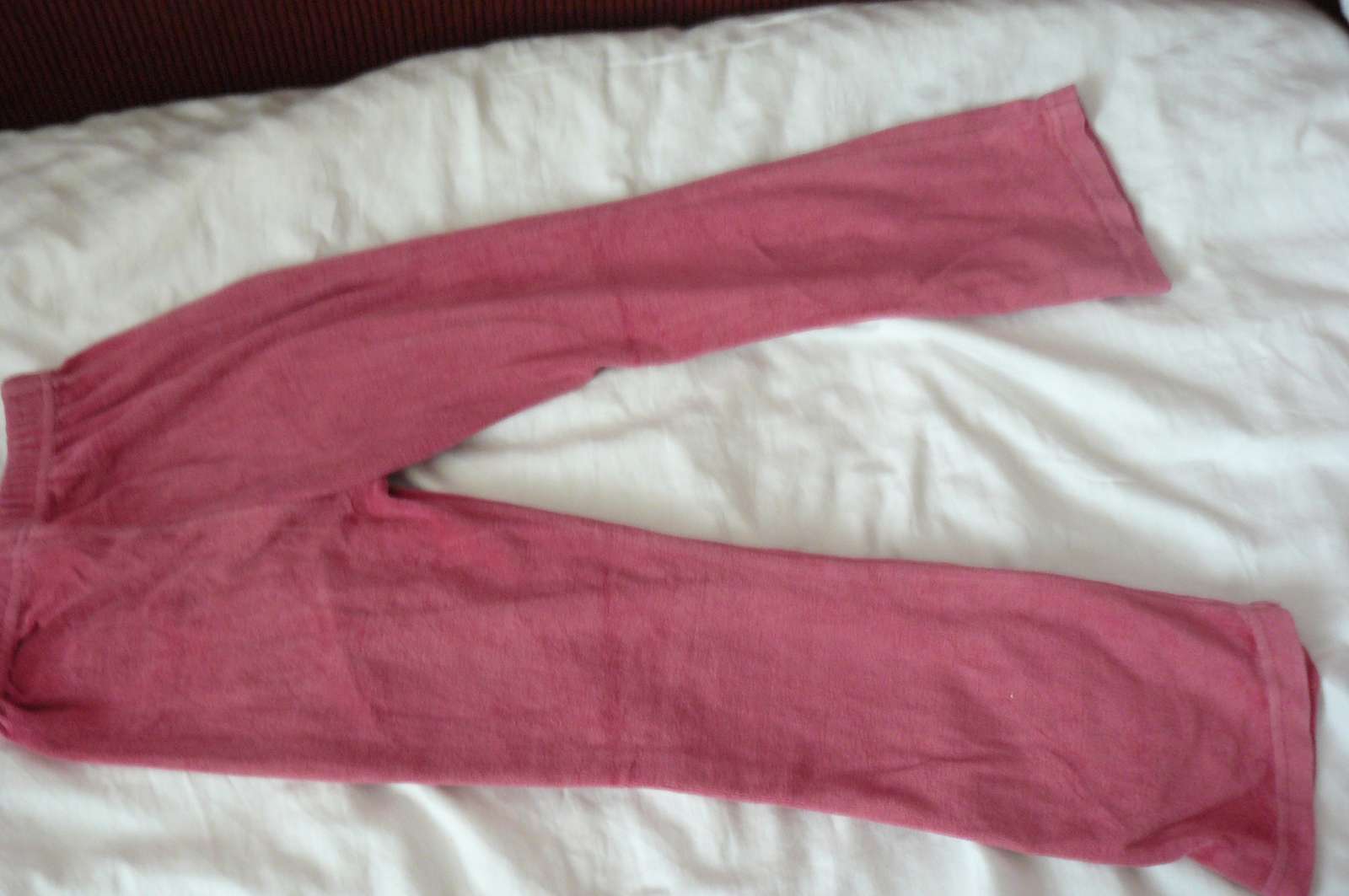 Predám tepláky.Je na nich malá dierka viď foto.Cena 0,80€ plus poštovné.Pás-2x23cm,natiahne sa do 2x27cm.Vnútorná dĺžka-53cm,vonkajšia dĺžka-70cm.