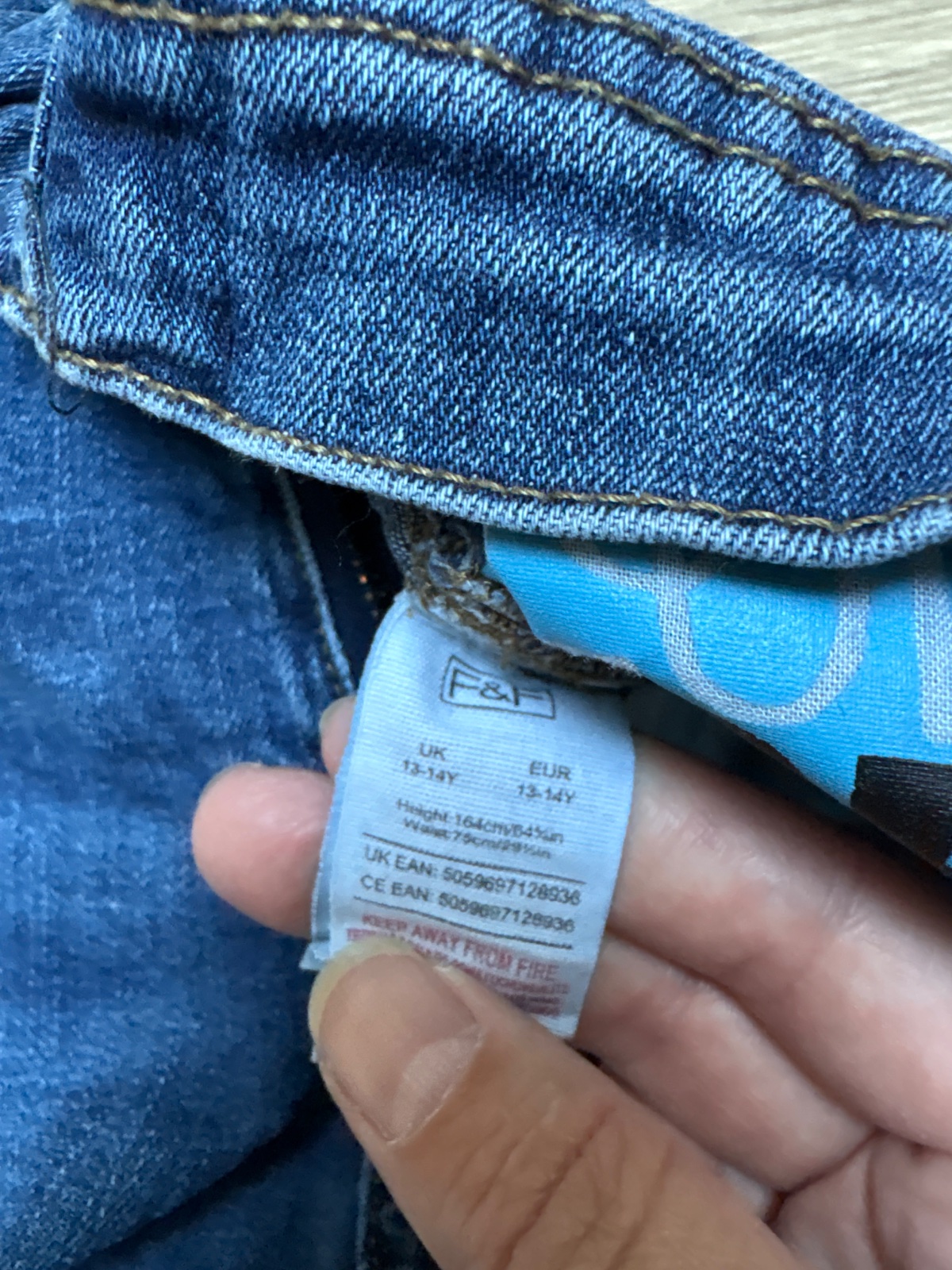Rifle úzke, s elastanom, F&F, veľ 164, bočná dĺžka 98cm, dobrý stav, na stehnách+vrecku jemne zošúchané - foto. Cena 4€+pošta