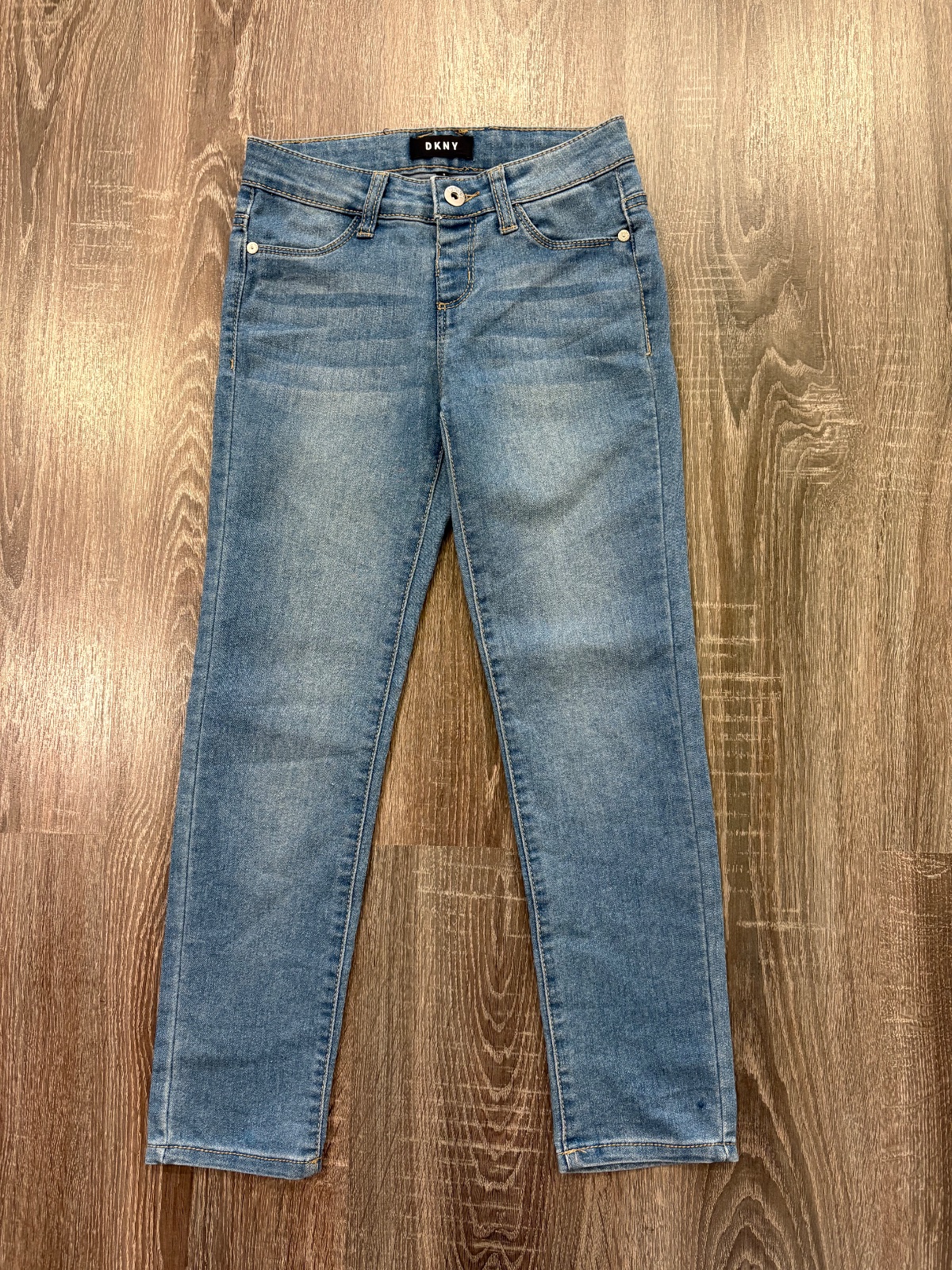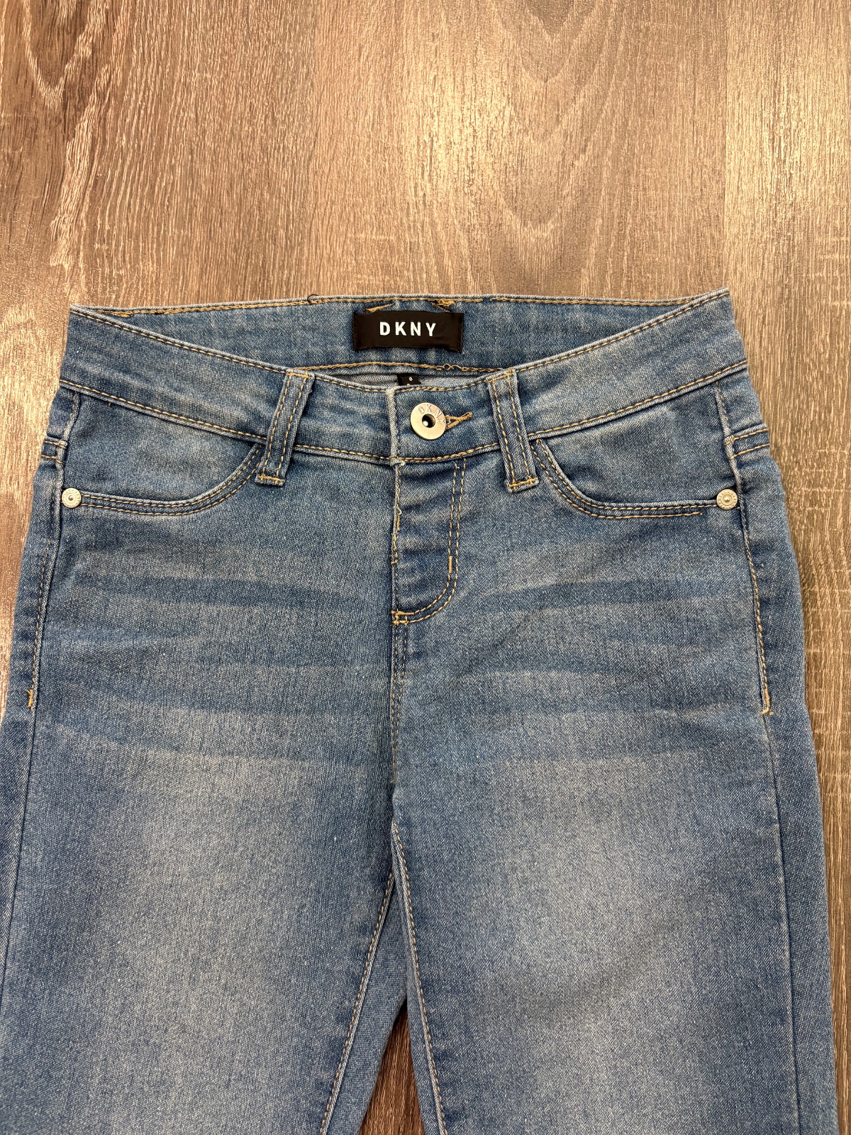 06.DKNY dievcenske elasticke rifle z makkej rifloviny,vo velkosti 8 rokov,dlzka je 77cm a sirka v pase je od 31x2cm do 35x2cm,sirka stehna pod rozkrokom je od 21x2cm do 24x2cm