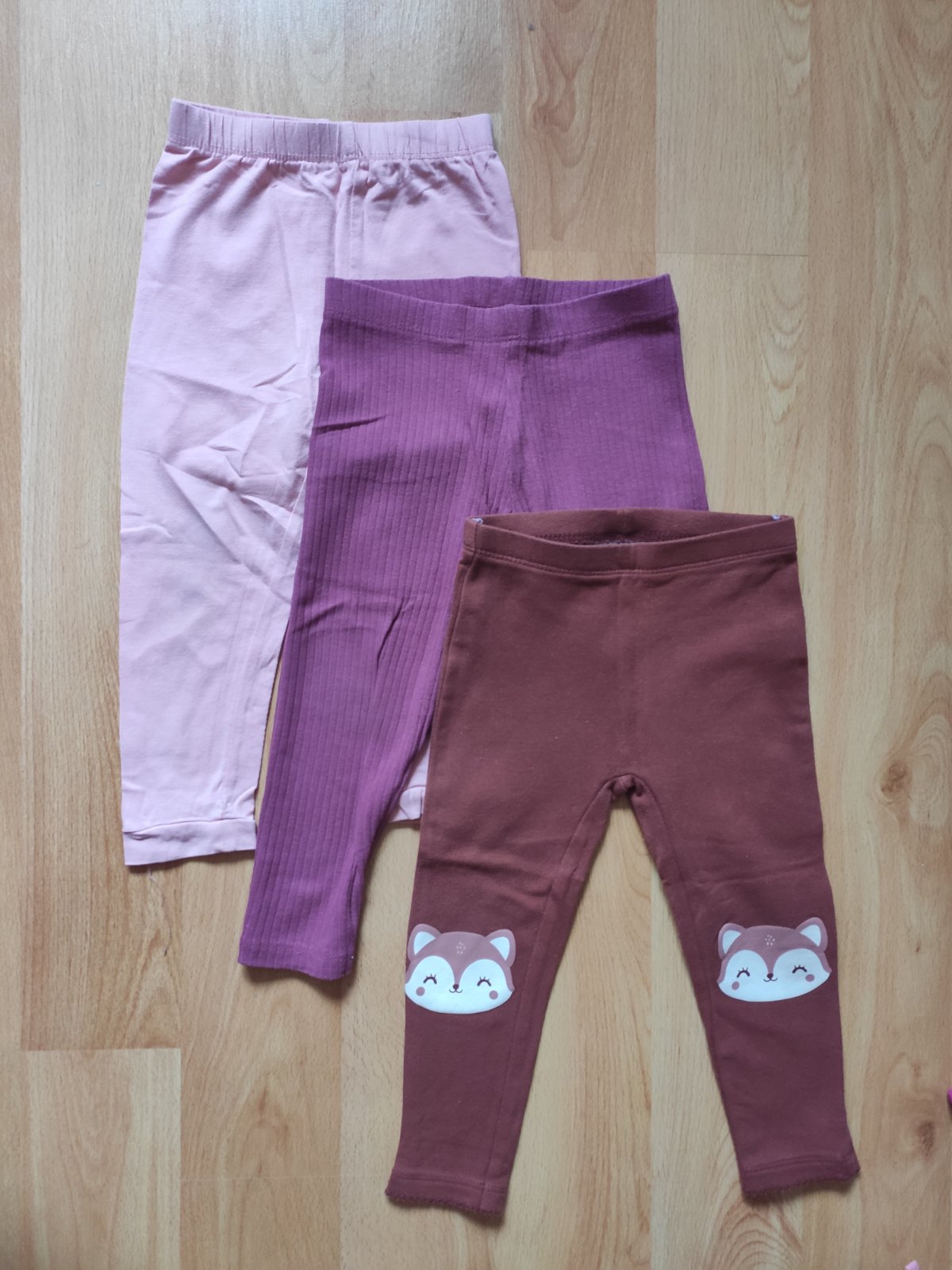 3 ks nohavíc rôznych značiek (svetlé sú Reserved a sú tenké, rebrované sú F&F a bordové s líškou sú C&A a zateplené), bez vád, vyprané v Non toxic prášku. Cena za všetky spolu.