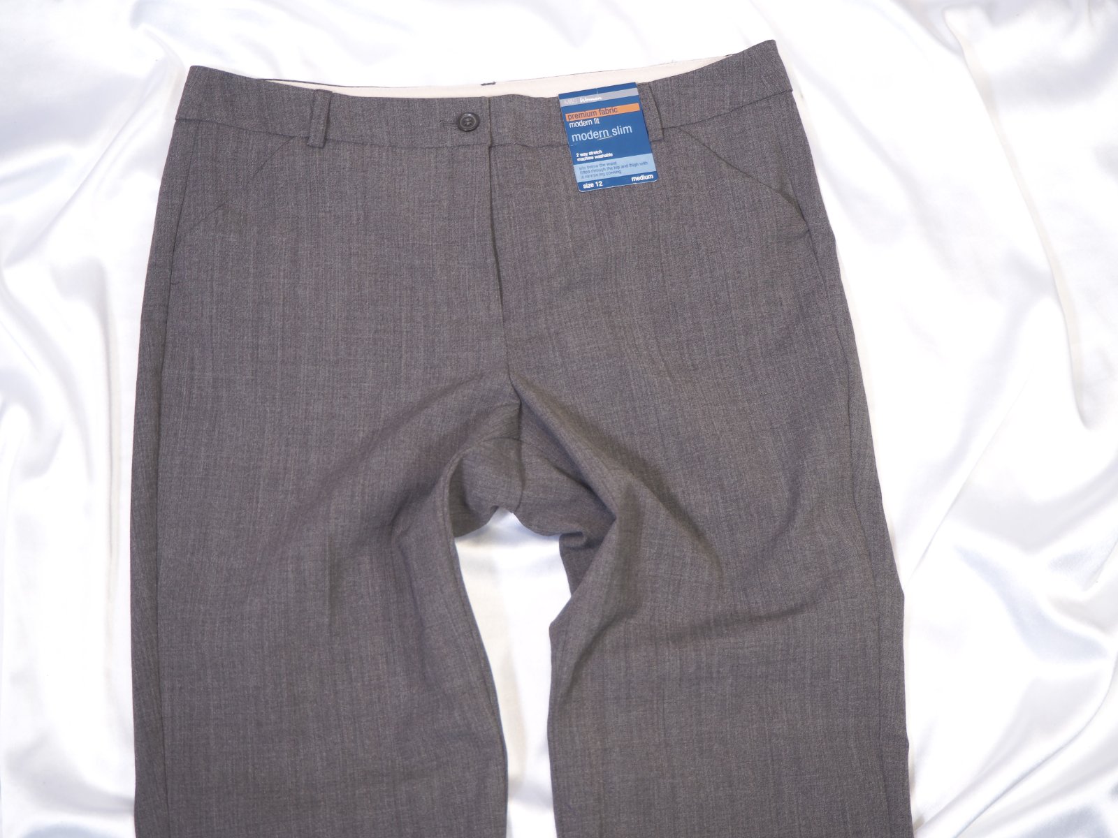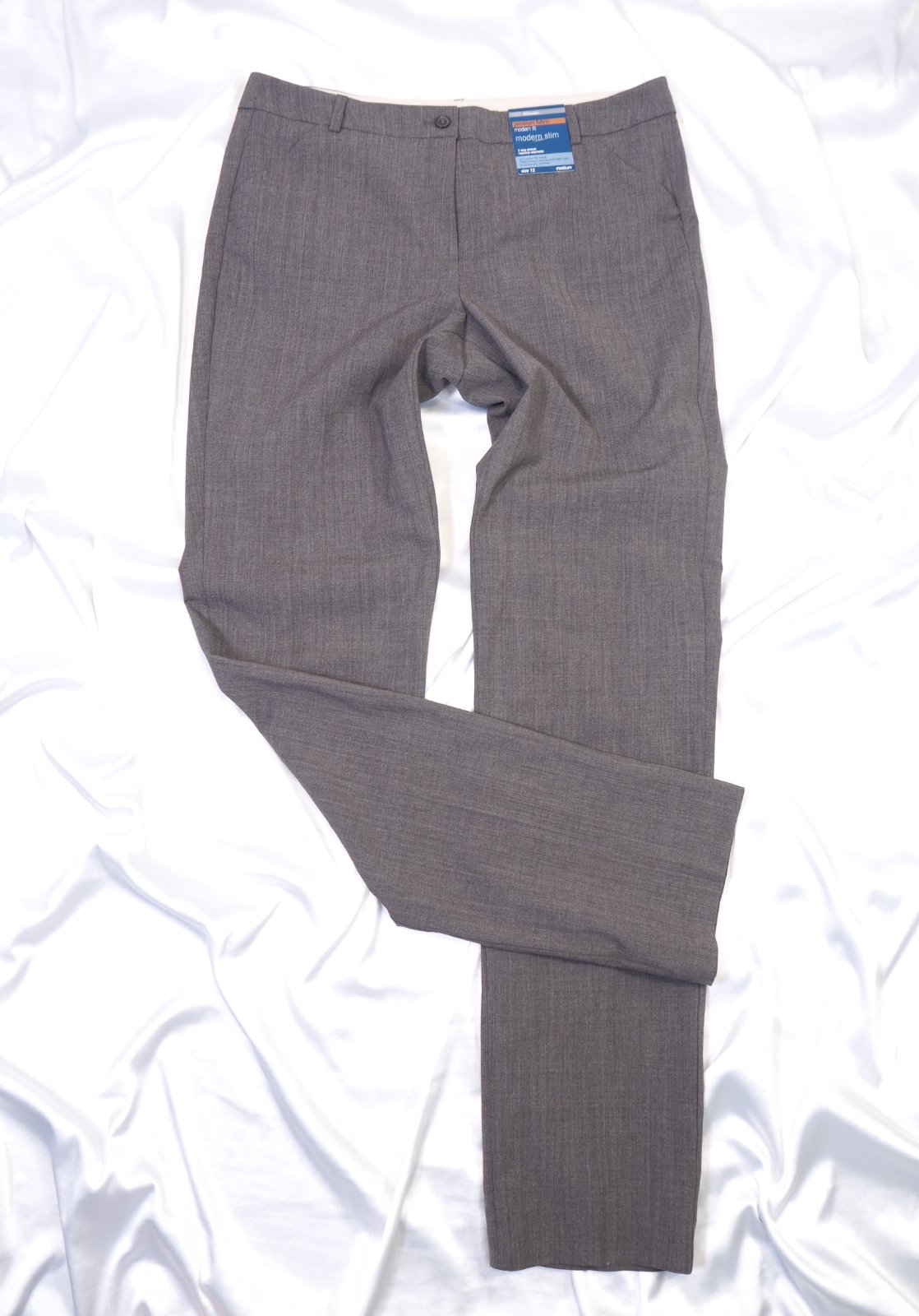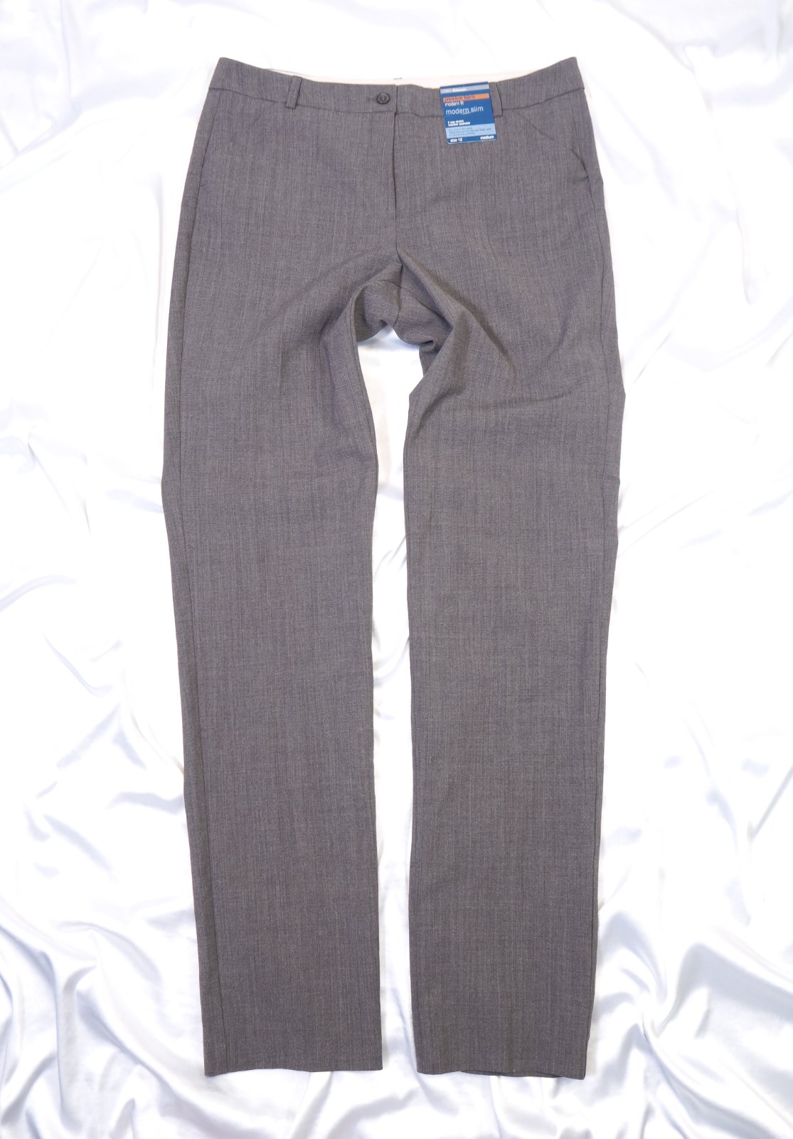 Kvalitné elegantné nohavice sivej farby, zapínanie na zips a gombík, materiál 63% polyester, 33% viskóza, 4% elastan, nové s visačkou.