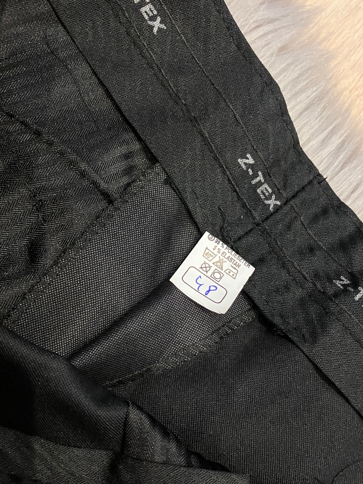 ROZMERY: dĺžka: 93cm, od rozkroku dĺžka dole: 65cm, zadný sed: 36cm, predný sed: 25,5cm, pás: 85cm.