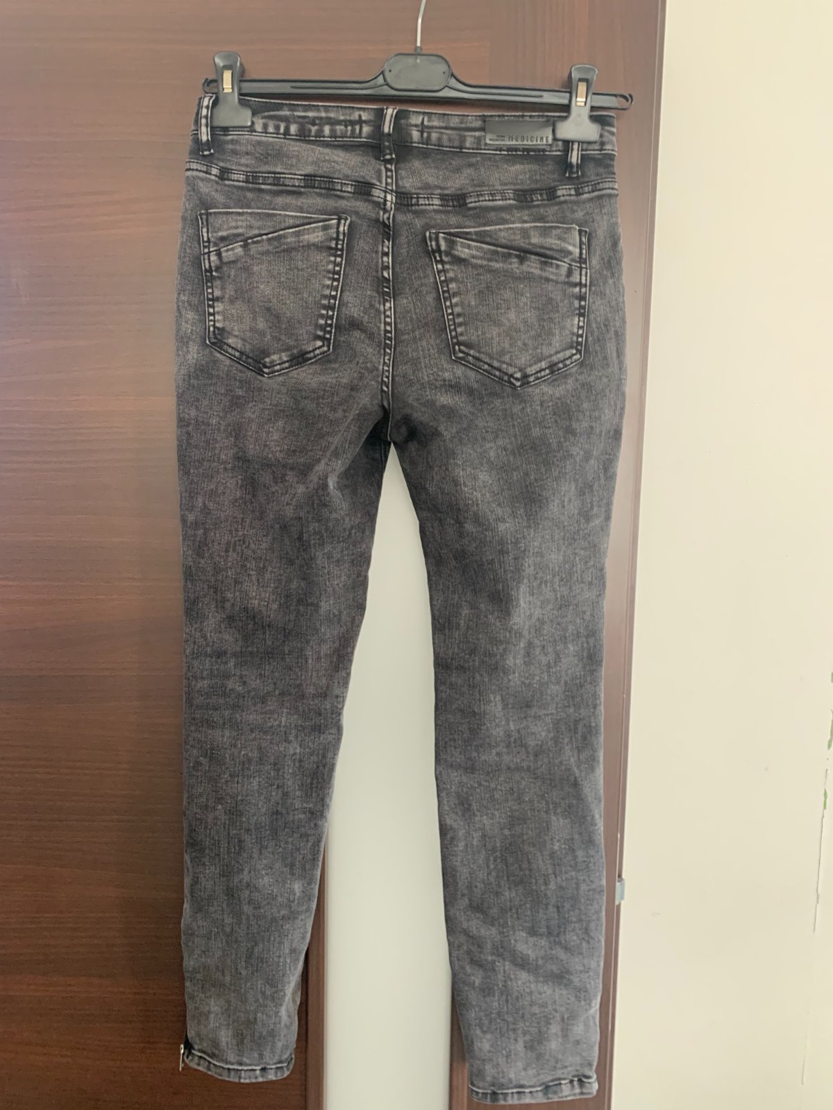 Dva krát oblečené, vo veľmi dobrom stave, Rozmery pás 37-45x2 cm. boky 45-55x2 cm, dĺžka 97 cm, predný sed 25 cm, zadný sed 35 cm. Elastické. Uvedená veľkosť je 36, ale nakoľko sú veľmi elastické, tak sedia aj na väčšiu veľkosť. Farba šedá, melírová. Poštovné 3,50 €.