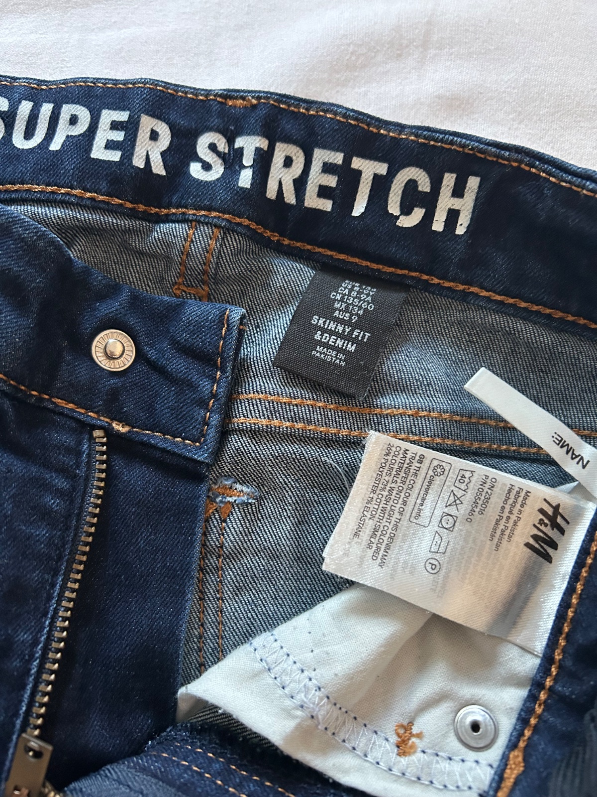 Krásne jeansy Nosenie vidno trošku na kolienkach, v reáli oveľa menej ako na foto Zohladnené v cene Rozmery: Pás 2x31,5cm, reguľovateľný Dĺžka 82cm