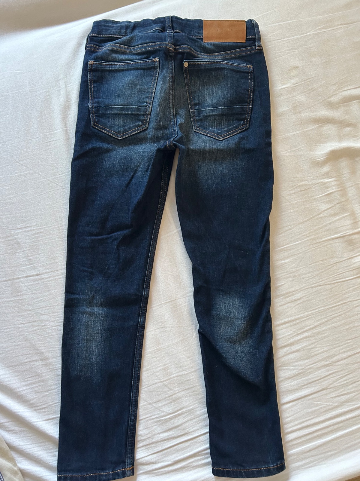 Zachovalé, nijako nepoškodené, ako nové, pás stiahnuteľný gumkami, veľkosť 134, rozmery - pás - 34 cm, dĺžka - 78 cm, dĺžka od rozkroku - 59 cm.